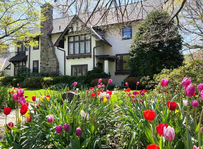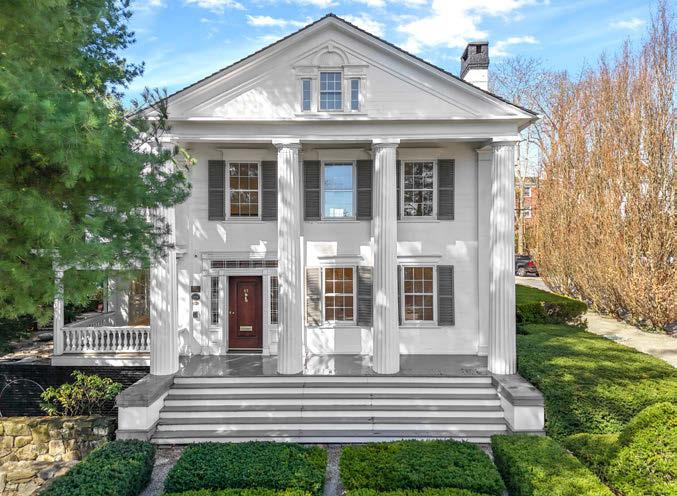 Tranquil Estate. Greek Revival home surrounded by serene gardens and outdoor rooms, beautiful in all seasons.