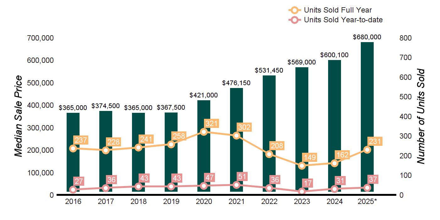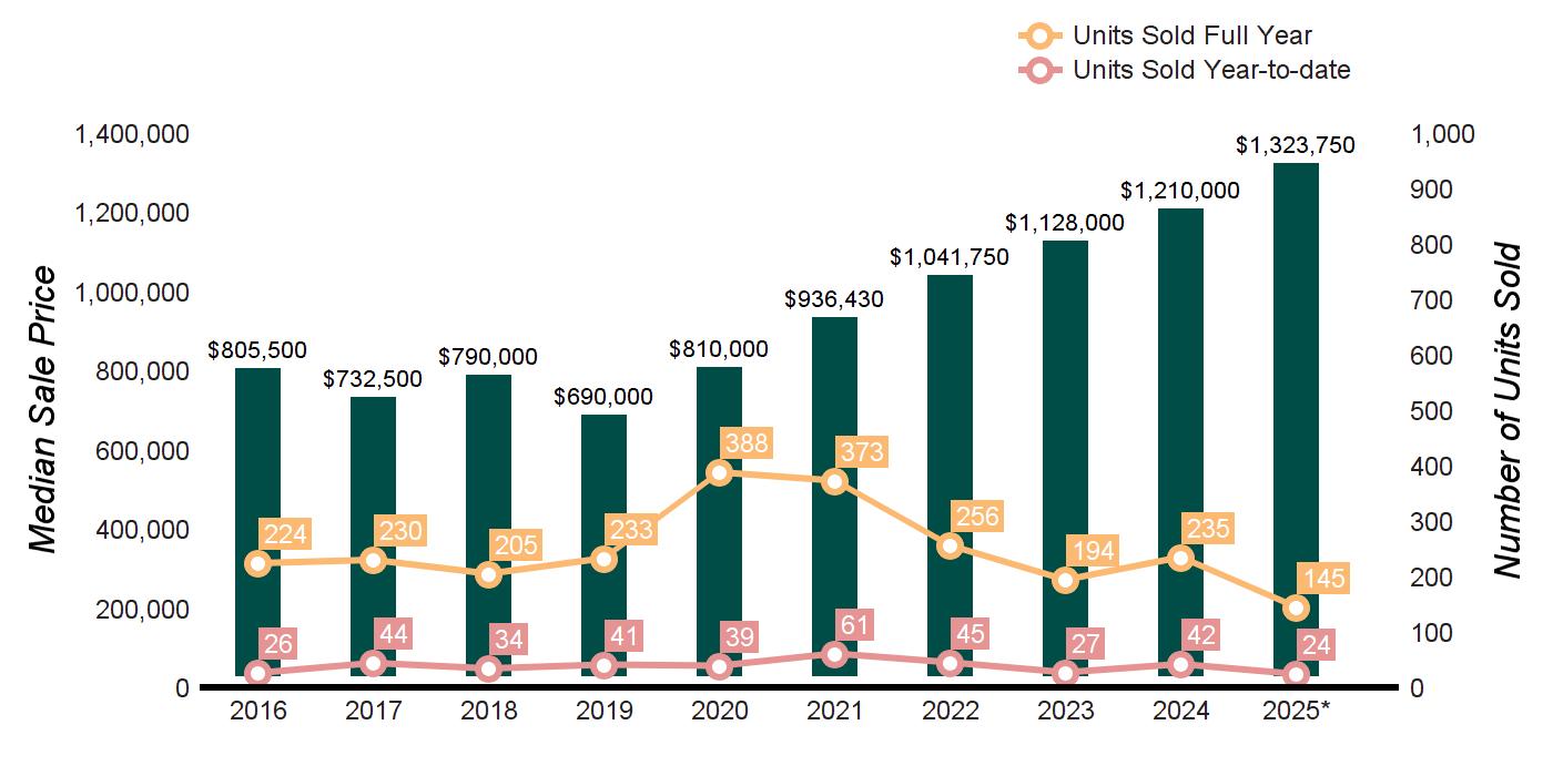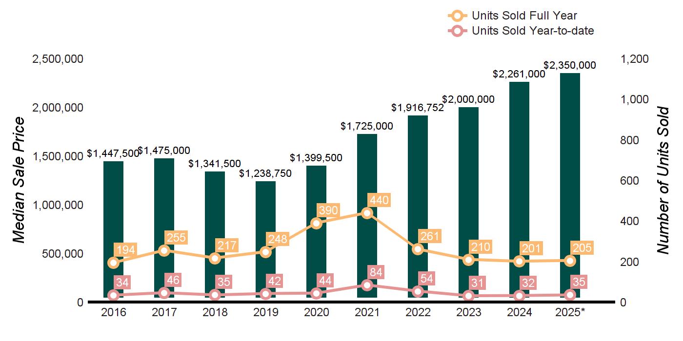Source : Greenwich MLS, Residential / Single Family Homes * Homes sold for 2025 are annualized based on actual sales year-to-date