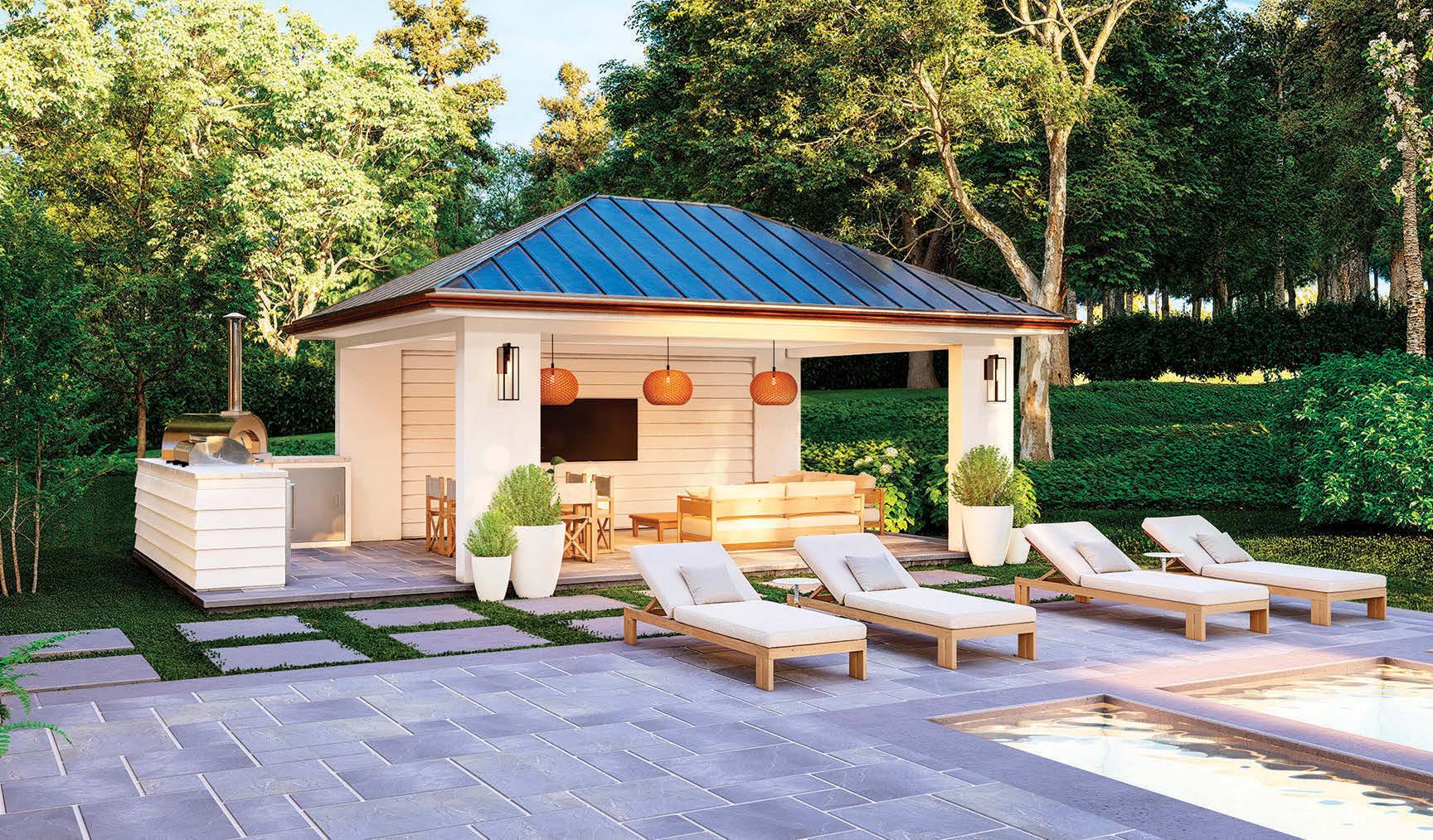 Modern Villa. Move-in-ready, modern fivebedroom, six-bath home on private cul-de-sac with an approved pool site.