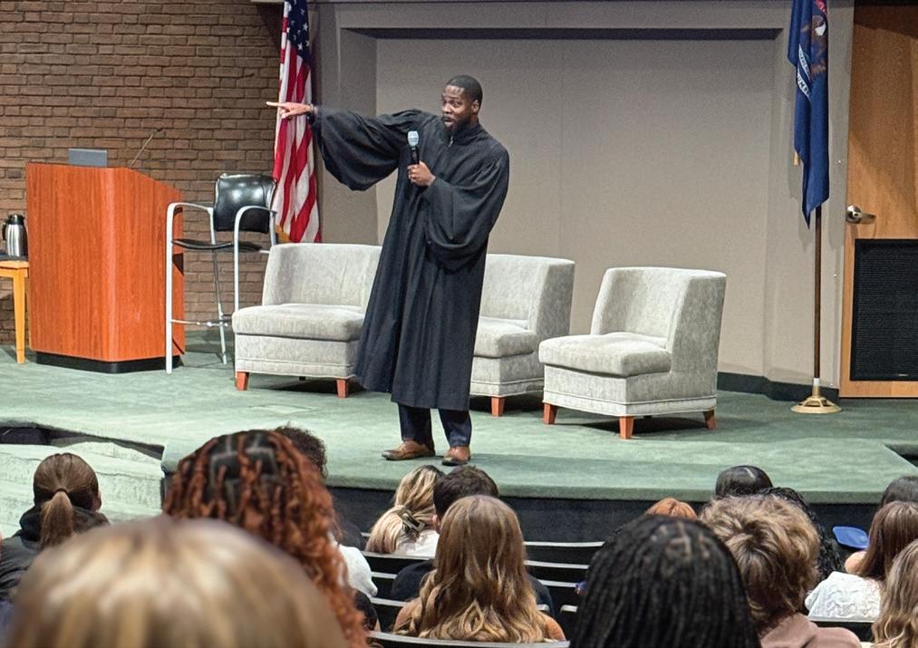 e YLC starts with a keynote speech from a prominent leader in the legal eld to inspire students about the law’s role in their lives. In the past few years, keynote speakers have included circuit court judges, a Supreme Court justice, and a secretary of state. After the keynote, students attend their choice of breakout sessions with other members of the bench and bar to explore legal interests and issues pertaining to modern students and young adults. Past topics for breakout sessions have included pathways to law school and legal careers, di erent careers within the legal eld, computer forensics and traditional forensic evidence, conviction integrity, rights and responsibilities when interacting with law enforcement, election law and civic engagement, cyberbullying, legal advocacy across various issues and professions, the breadth of constitutional rights, and many more.