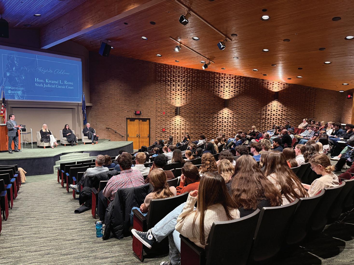 the roughly 140-180 high school juniors and seniors in attendance. Next, students select from a series of breakout sessions on topics they may confront in their early years, such as tra c stops, the legal consequences of being an “adult,” or the intricacies of election law. Students may also have the opportunity to consider a fact pattern from the conference organizers to introduce their minds to legal issue spotting and analysis and, perhaps, learn whether the depictions of the law they see on television align with reality. e YLC concludes with a crowd-pleasing favorite — the Law Dogs, which either represent the Oakland County Sheri ’s K-9 Unit or are the kinder, gentler versions of the species that serve as “therapy beasts.” e students learn how the four-legged volunteers aid in ghting crime or provide comfort to help victims work through trauma.