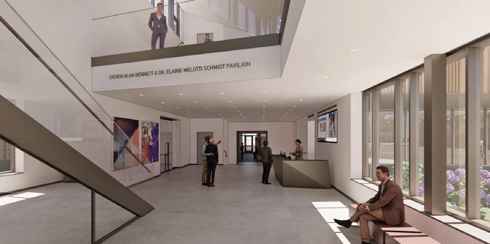 Steven Alan Bennett and Dr. Elaine Melotti Schmidt, the new pavilion will add four new galleries, including an underground print gallery, two education studios, a new museum store, an outdoor sculpture park, and viewable collections storage. Sta support spaces, such as expanded collections storage, a workshop, and event prep areas, will also enhance the museum’s operations.