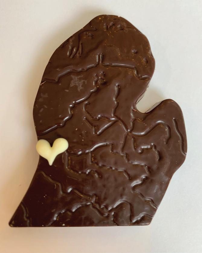 Friends have told me they’ve eaten Detroit, or Traverse City. e smart ones tell me they’ve eaten the entire chocolate mitten and now don’t know where to nd me. ey ask me to send another.
