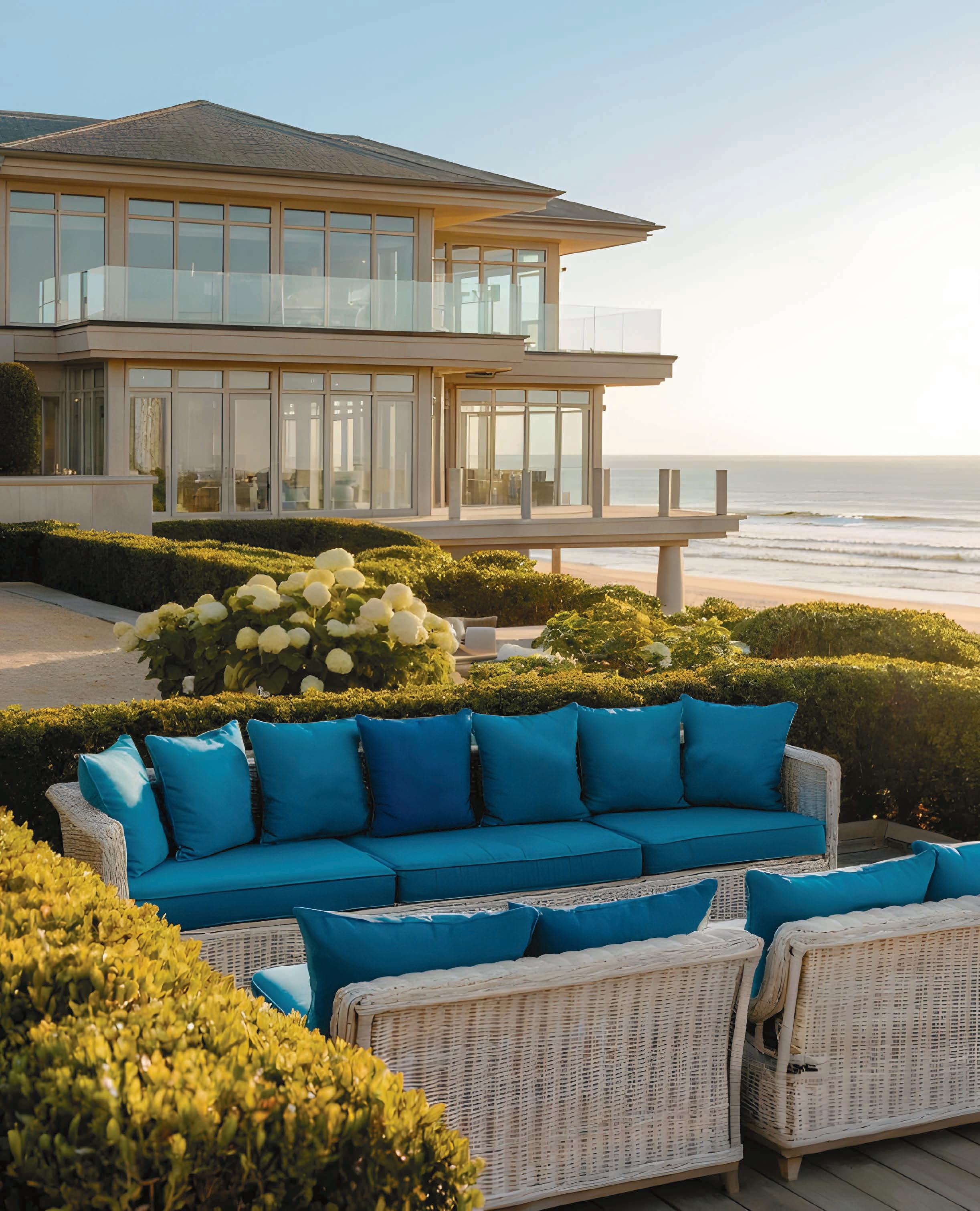 against the salt air really well, and it helps that it’s a heavier product, for when we get high winds like we did with the hurricane that was just offshore. It’s also incredibly low-maintenance: Customers will basically just powerwash it once or twice a year, and that’s all the maintenance they have to do. Most don’t even cover it during the winter, they just bring their cushions in.”