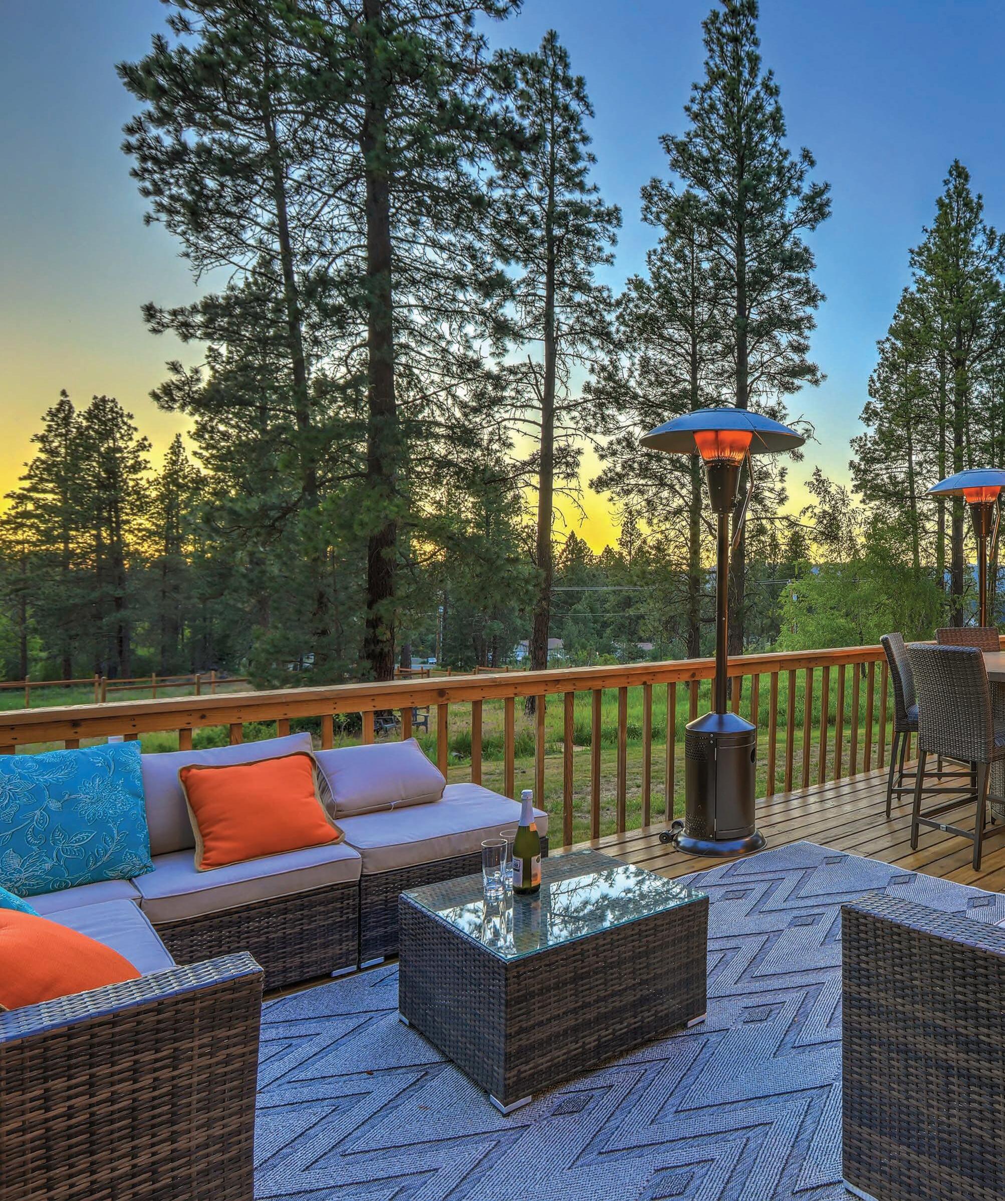 “Homeowners can add a sleek, modern cold plunge tub just off the deck for a bold, health-conscious statement. Consider a cedar tub for a rustic vibe or a stainless steel model for a cleaner, spa-like look,” says Fisher. “Alternatively, an outdoor sauna— barrel or prefabricated cabinstyle—nestled beside your deck adds warmth, both literally and visually, and it’s the perfect year-round escape, turning your deck into a luxury retreat.”