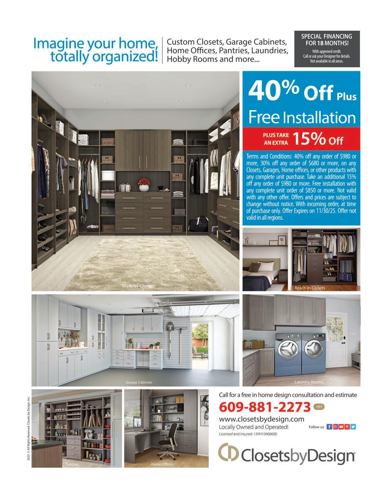 Closets by Design (866) 278-8881 (Pa. and Del.) (888) 500-9215 (N.J.) ClosetsByDesign.com