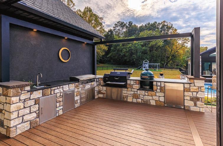 “People are looking for different dedicated areas— kitchens for grilling, lounging areas with TVs—to help create different atmospheres,” he says. “Homeowners are getting creative with their spaces and the nature of what’s around them. The flow of the decks [we are building] are definitely different than a lot of the cookie-cutter decks that everyone thought they had to do [in the past].”