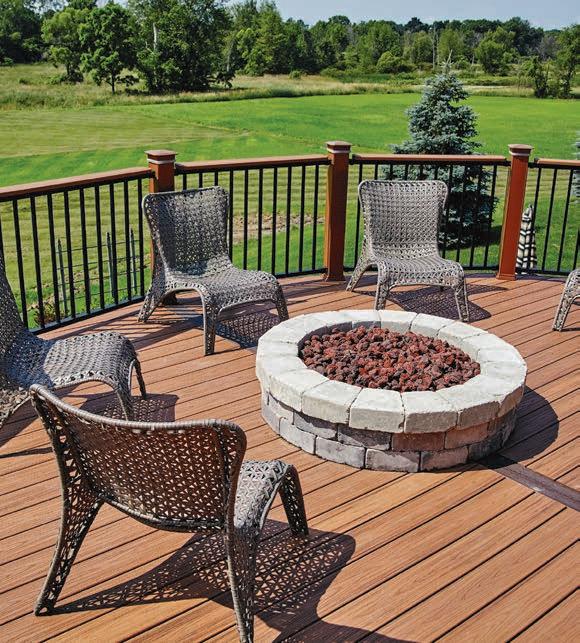 Coburn says there also has been recent momentum heading toward PVC decking as a viable option. “Mineralbased composite decking is getting some buzz right now, but the pros and cons of PVC vs. mineral-based composite have PVC winning across the board in my opinion. PVC holds less heat, is better priced, is lighter and easier to install,” he says, adding that PVC is an especially good choice for decks near pools or in sunny backyards.
