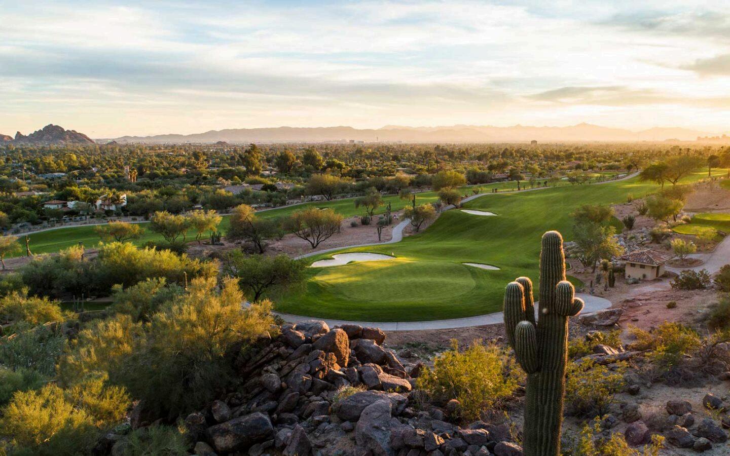 A golf course made to help beginners and pros work on their short game. The course is surrounded by Arizona landscape and mountains, making it a serene and calm environment.