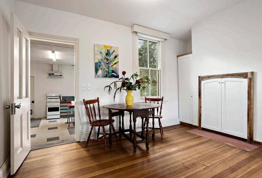 A picturesque original cottage sited on approx 1900 sq.m (just shy of half an acre) with stunning views to the nearby Wombat State Forest. Once the home of the village blacksmith the northfacing and light-filled cottage has been beautifully renovated and updated to provide short-stay accommodation with all the modern comforts while retaining charming heritage details. CRESWICK 24 KING STREET IDEAL INVESTMENT PROPERTY OR FAMILY HOME • 770m² Land zoned General Residential • Mains power, town water, sewage, mains gas and NBN available. • Central gas heating, split system heating/ cooling • 20 min drive to Ballarat central and 25 minutes to Daylesford.
