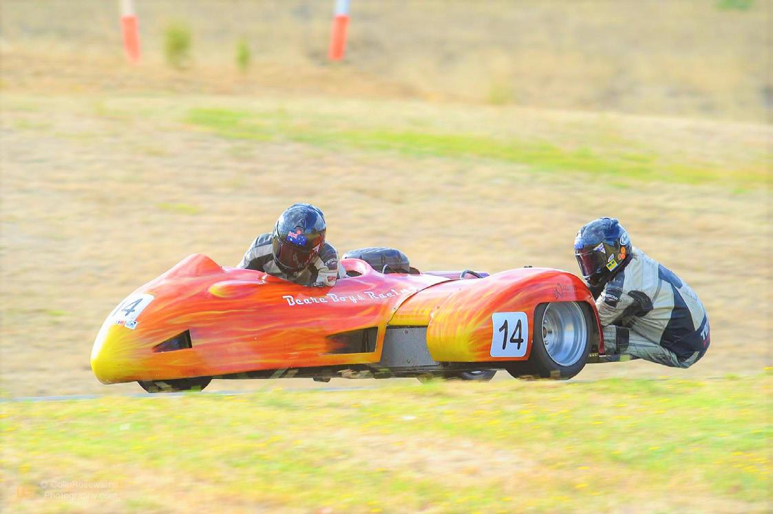 The niche sport of sidecar racing would have to be one of the most photographic, daring, arguably lunatic and heroic motor sports going. “It’s exciting,” says Daylesford’s Noel Beare, one of the fairly exclusive bunch of folk that belong to Australia’s competitive sidecar racing fraternity. “You don’t think about your house loan or that bill you have to pay.” When he’s racing sidecar, Noel, also known around town in his more sedate guise as a postie, also thinks (or perhaps it’s something more instinctive than thought) about how he’s using his own body weight to counterbalance the ferocious forces happening at those speeds to keep the sidecar upright and hopefully in a winning position. These days when they race, it’s Noel on back doing the “passengering” (read balancing) and son Declan in the driver’s seat.