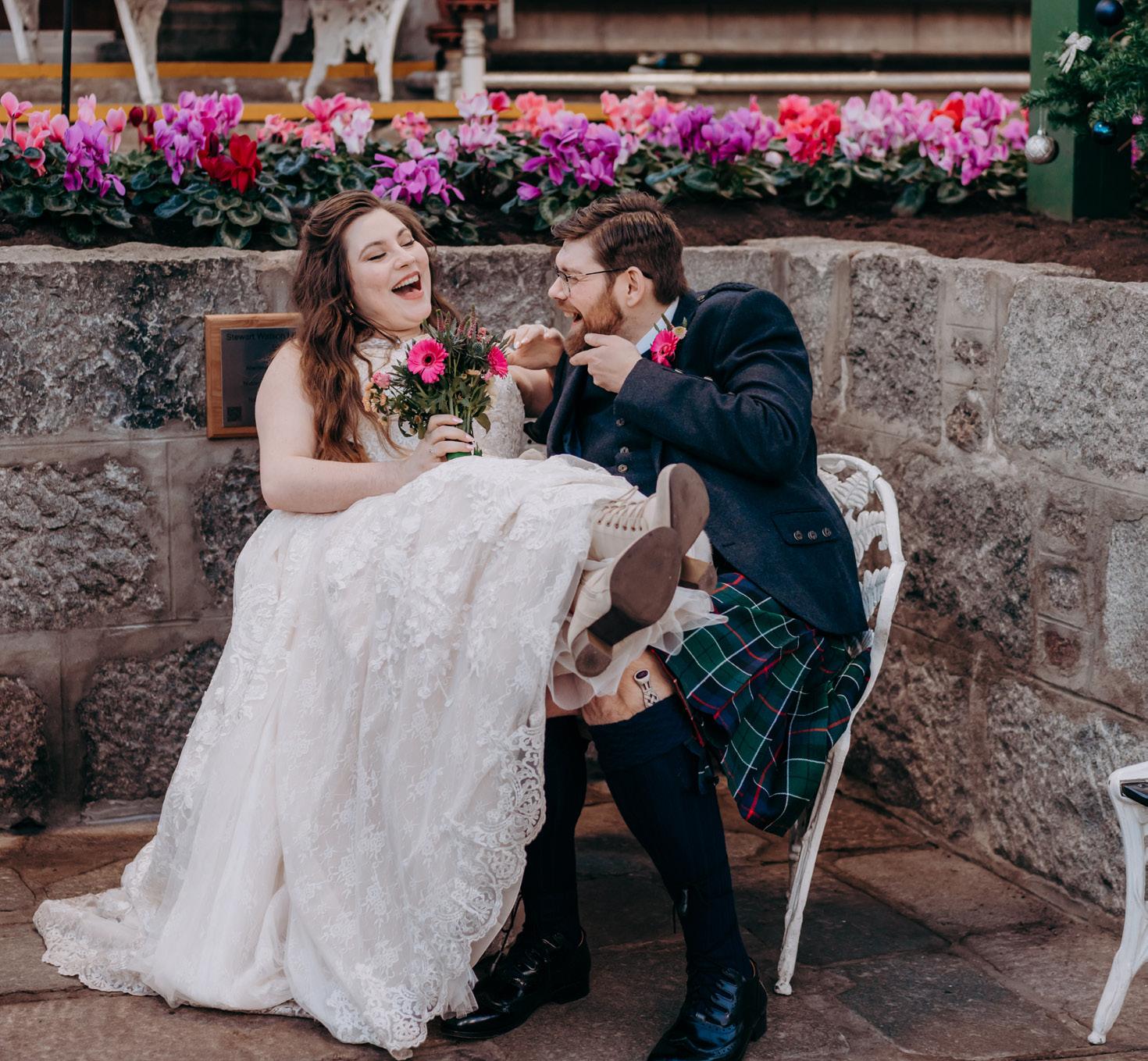 Carolyn and Josh’s big day, blending Scottish and Indian cultures, was a unique, colourful, multi-event celebration whilst Joseph and Isla went with a rustic autumnal vibe for their Logie wedding. We loved Imogen and Rosie’s summer nuptials too, especially the guard of honour walk in the bubble-filled courtyard at Norwood Hall Hotel!