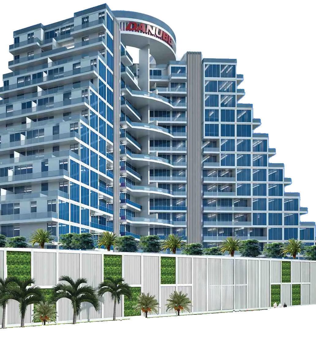 A striking residential tower with 40 floors, podium parking, and service levels, offering panoramic views and well-appointed apartments.