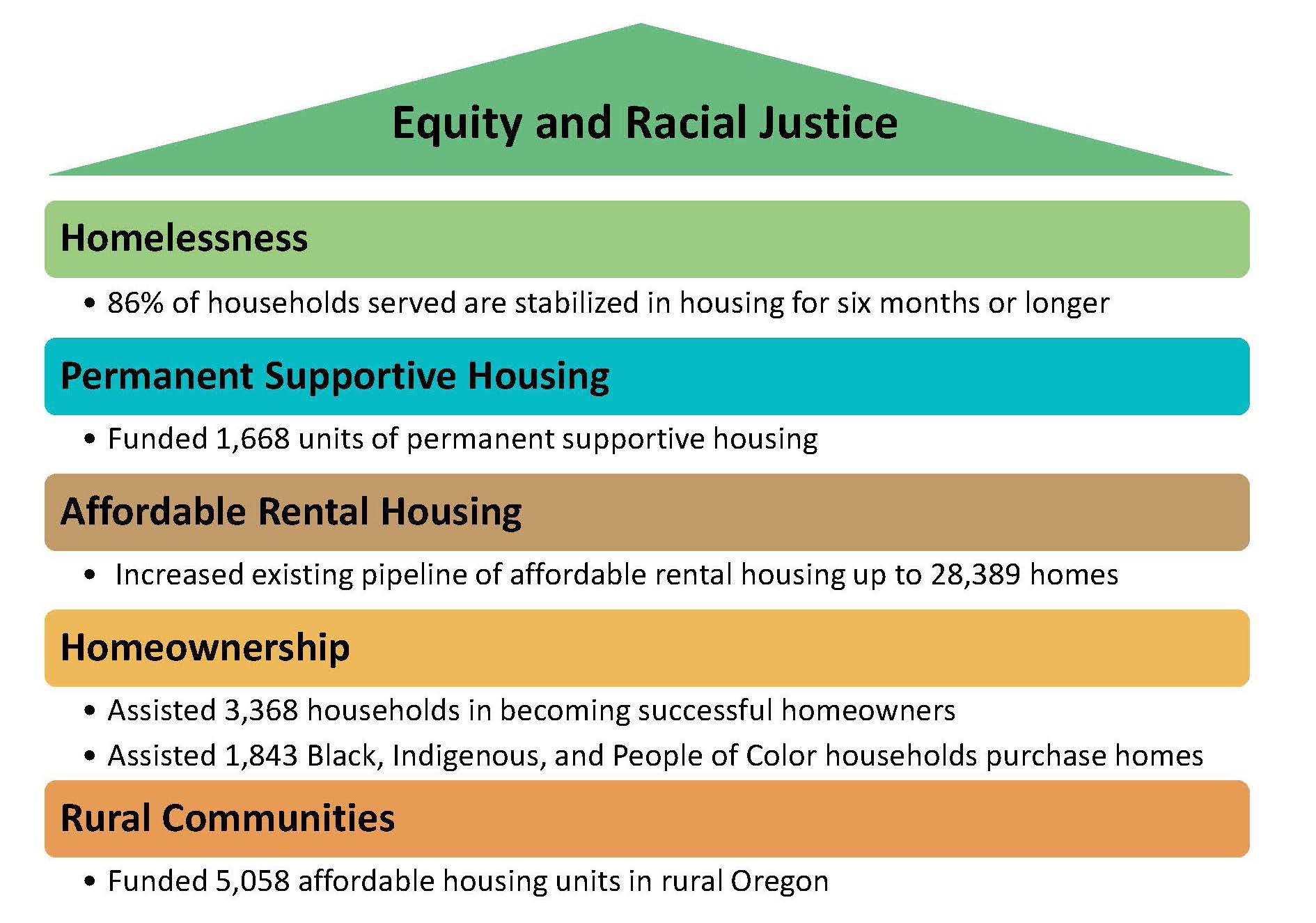 • Training all OHCS staff on equity and racial justice in housing through Government Alliance on Race and Equity or Center for Equity and Inclusion