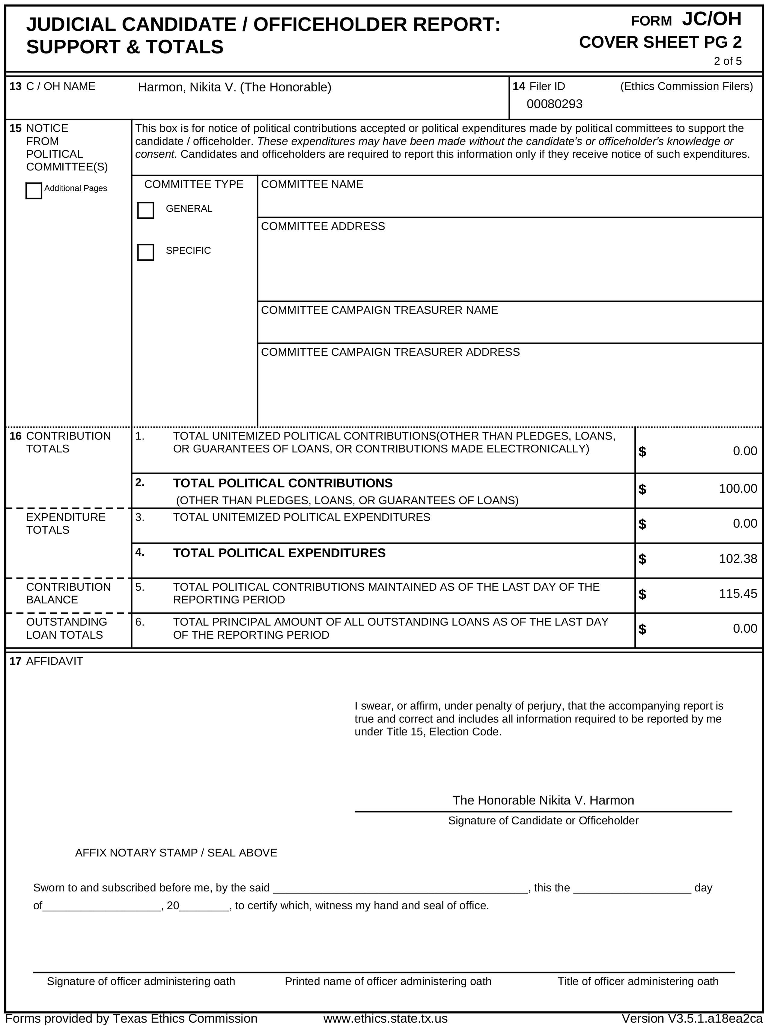 According to her July 17, 2023 Campaign Filing Judge Nikita Harmon only has $115.45