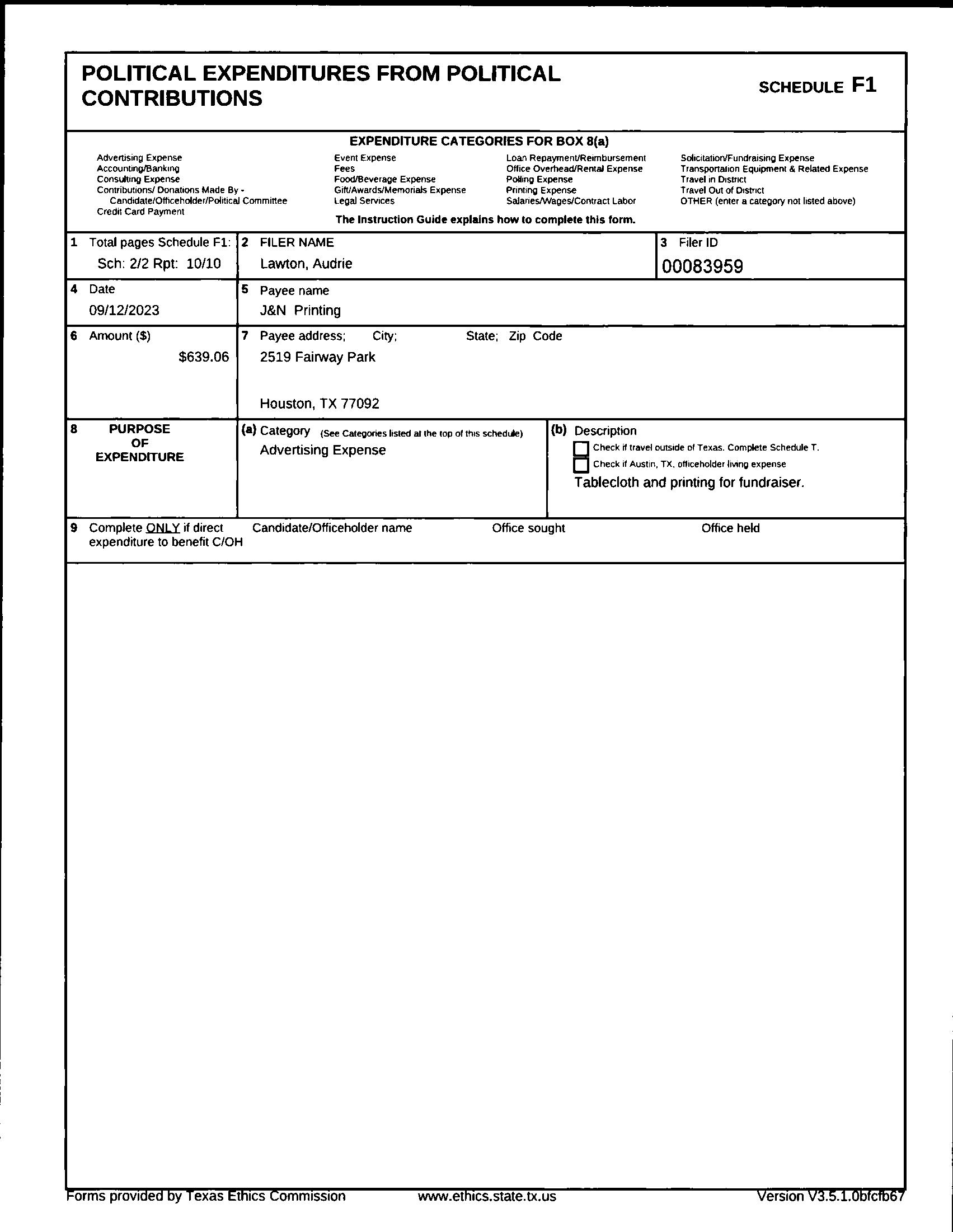 Judge Audrie Lawton-Evans, the presiding judge for Harris County Civil Court at Law No.1, only has $29,984.00 in her “CAMPAIGN ACCOUNT” based on the finance report she filed on 1/15/2025, under penalty of perjury. Aubrey R. Taylor Reports publishes the Houston Business Connections Newspaper. All Rights Reserved.