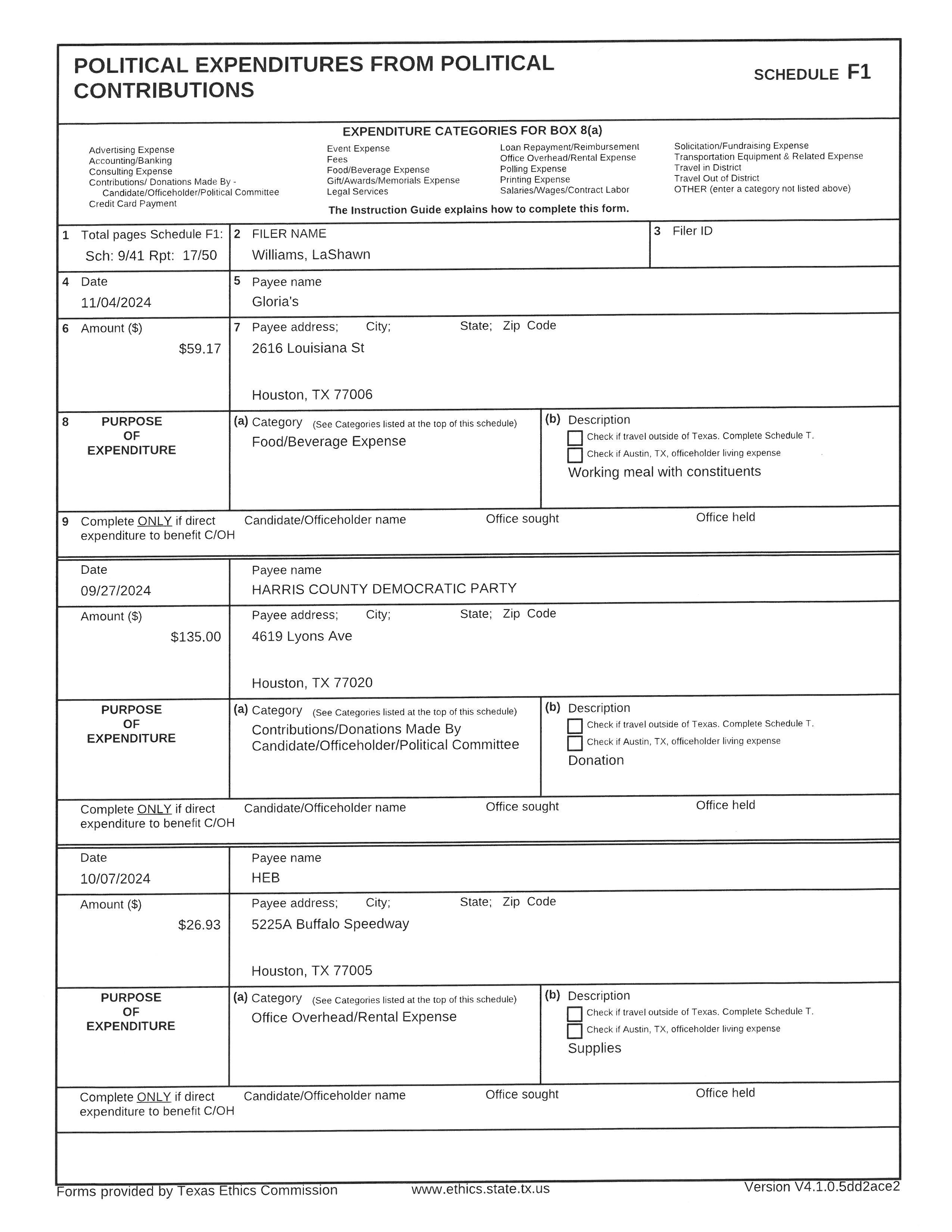 Judge LaShawn A. Williams, the presiding judge for Harris County Civil Court at Law No.3, only has $999.67 in her “CAMPAIGN ACCOUNT” based on the finance report she filed on 1/15/2025, under penalty of perjury. Aubrey R Taylor Communications publishes the Houston Business Connections Newspaper. All Rights Reserved.
