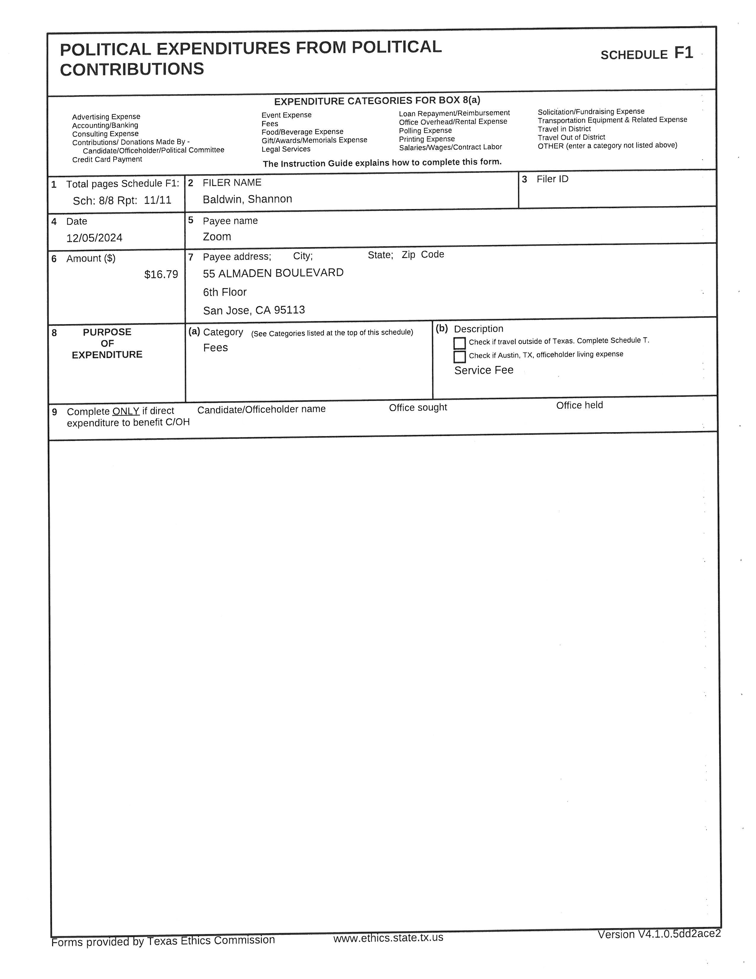 Judge Shannon Baldwin - 1-16-2025 - Campaign Finance Report