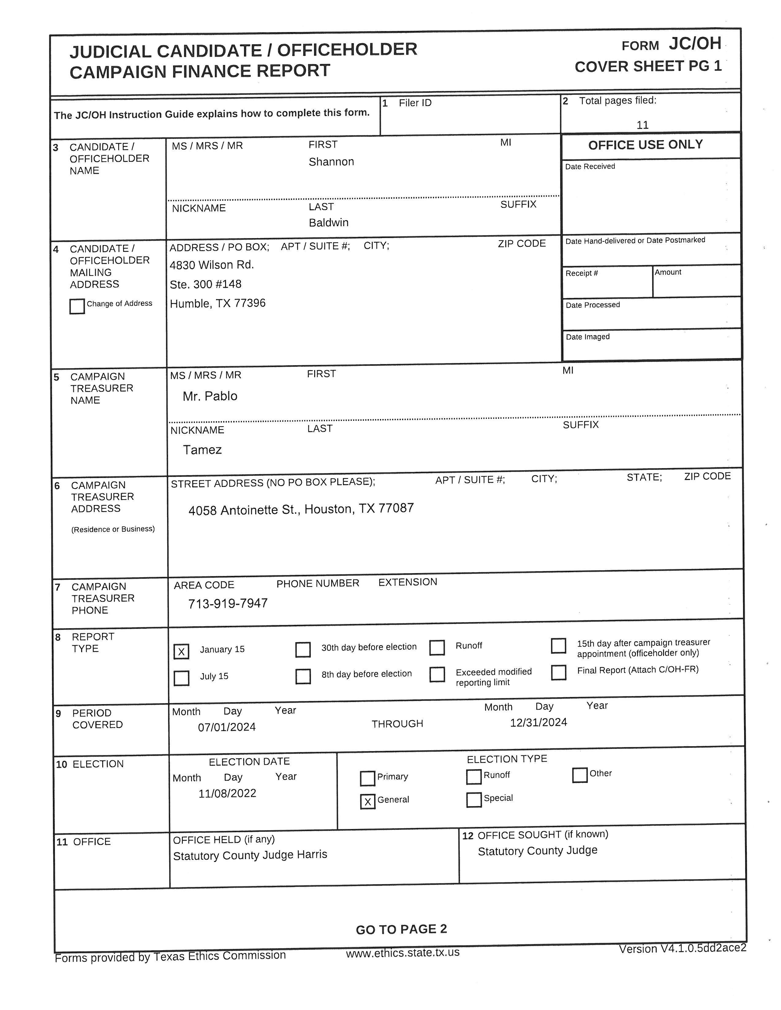 Judge Shannon Baldwin - 1-16-2025 - Campaign Finance Report by Aubrey R. Taylor Communications - Issuu