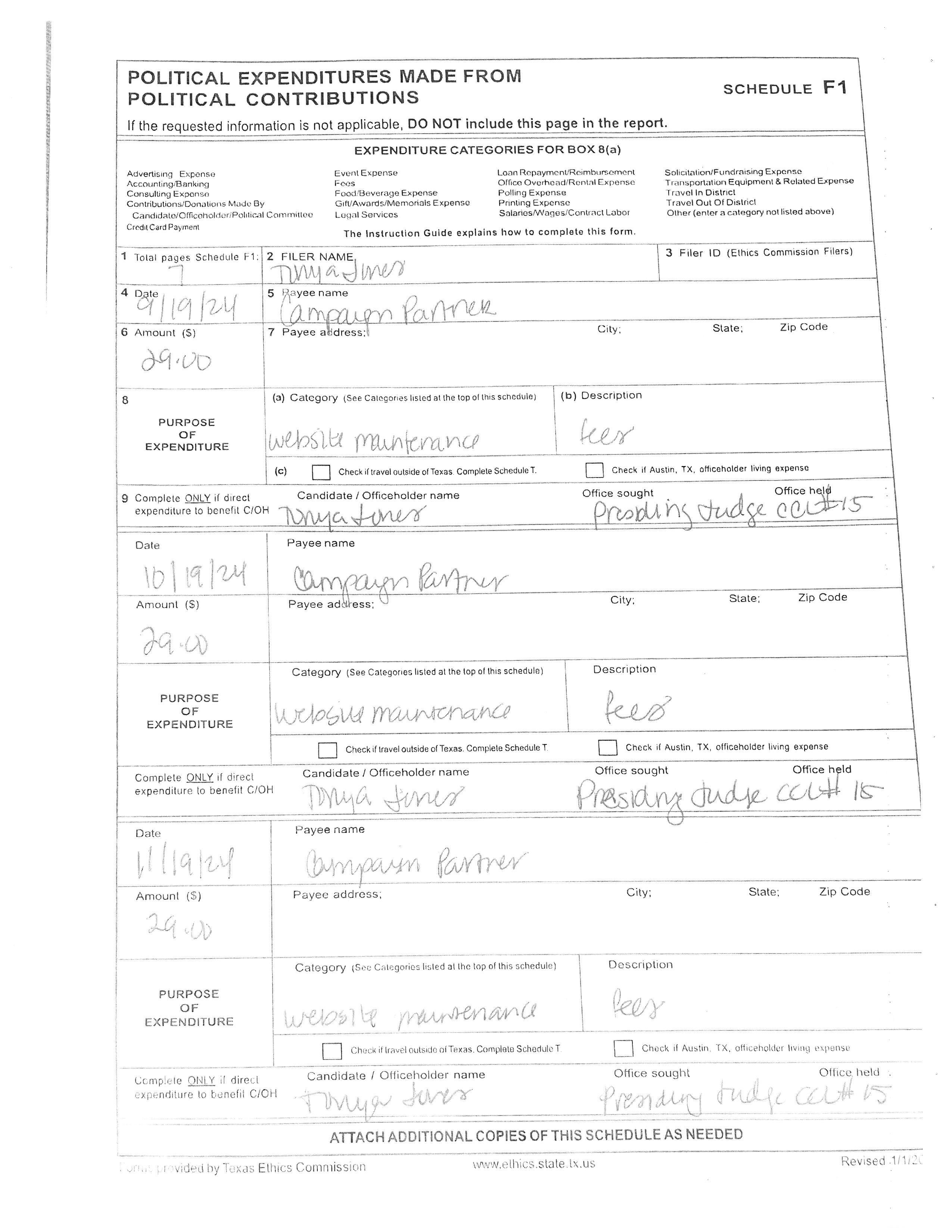 Judge Tonya Jones, the presiding judge for Harris County Criminal Court at Law No.15, only has $15,397.41 in her “CAMPAIGN ACCOUNT” based on the finance report she filed on 1/16/2025, under penalty of perjury. Aubrey R. Taylor Communications publishes the Houston Business Connections Newspaper. All Rights Reserved.