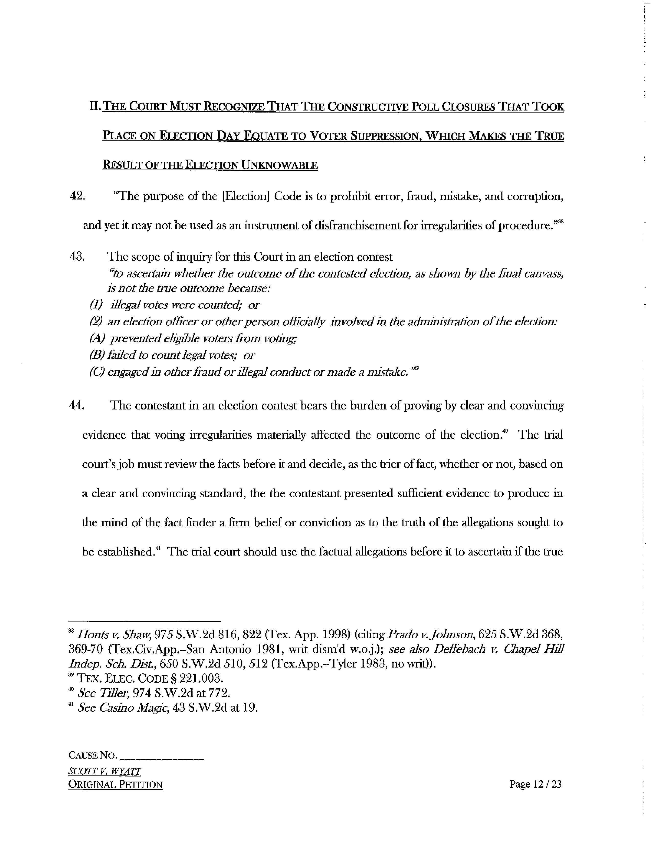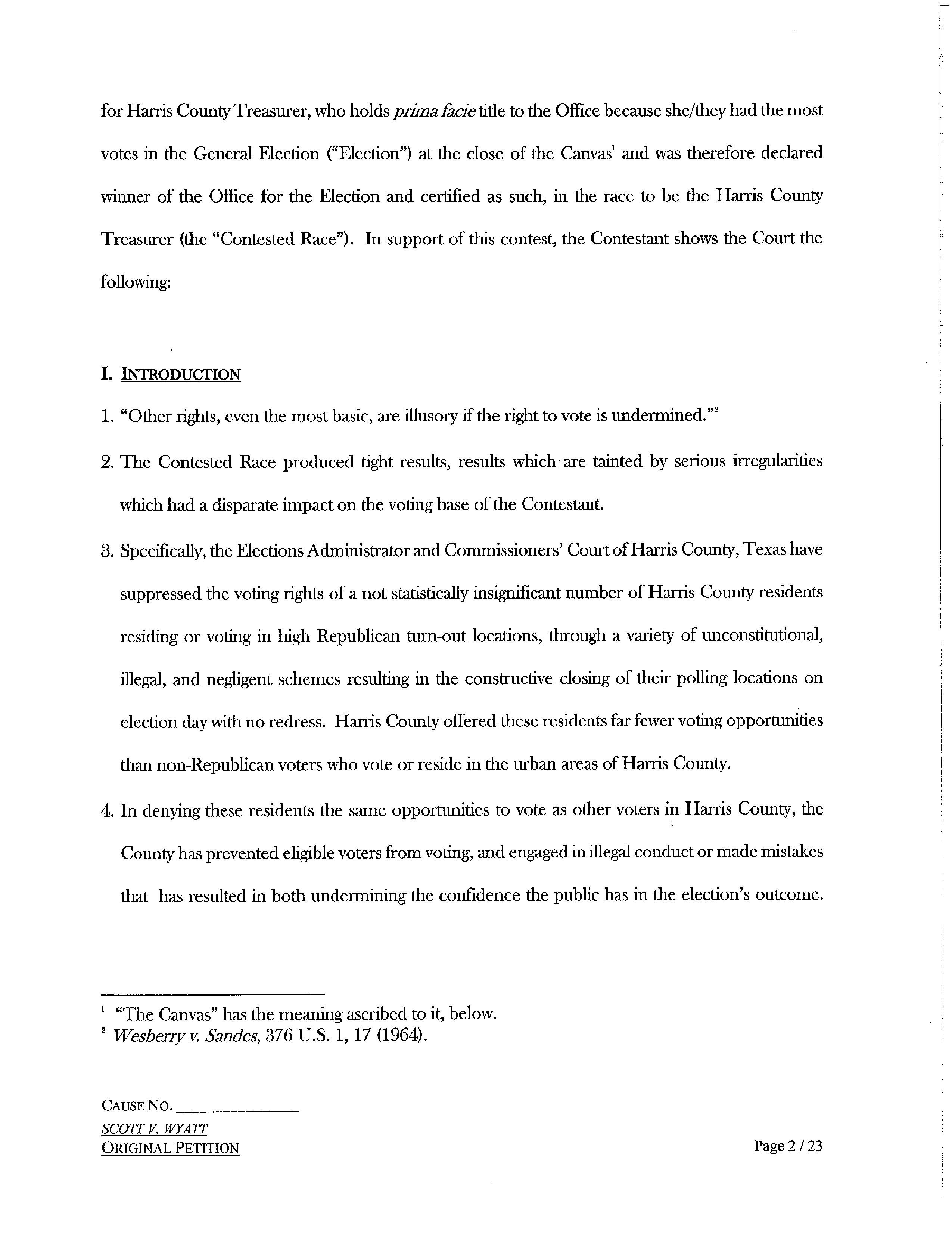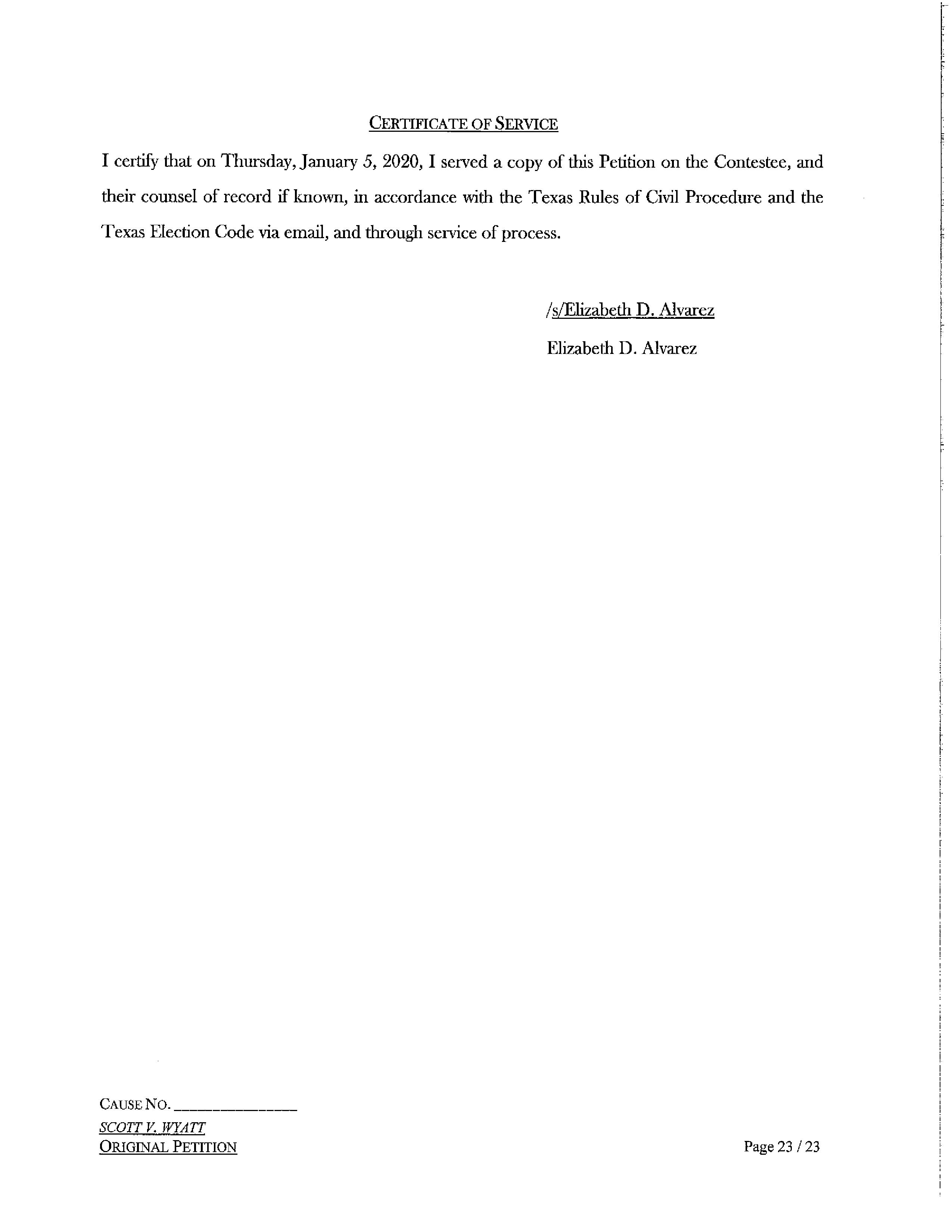 Kyle Scott’s lawsuit against newly elected Harris County Treasurer Carla L. Wyatt was filed on Friday, January 6, 2023, at 2:00 p.m., by Elizabeth D. Alvarez (Texas Bar No. 24071942), with Guest & Gray, P.C. out of Forney, Texas. Aubrey R. Taylor Communications is the publisher of the Houston Business Connections Newspaper. All Right Reserved.