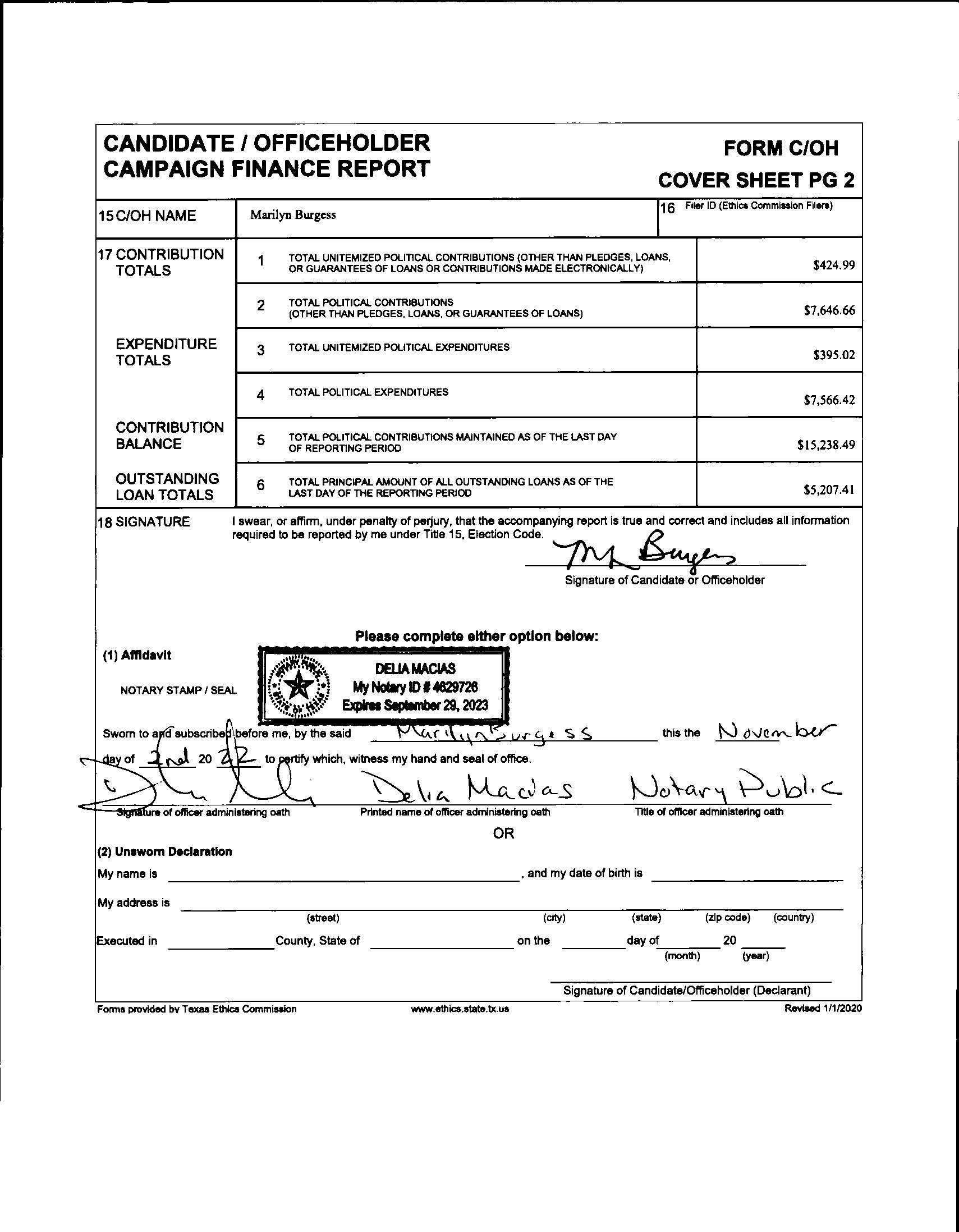 This campaign finance report was filed by Marilyn Burgess, the Harris County District Clerk on November 2, 2022, and shows her as having only $15,238.49, cash on hand at the time. Aubrey R. Taylor Communications is the publisher of the Houston Business Connections Newspaper. All Rights Reserved.