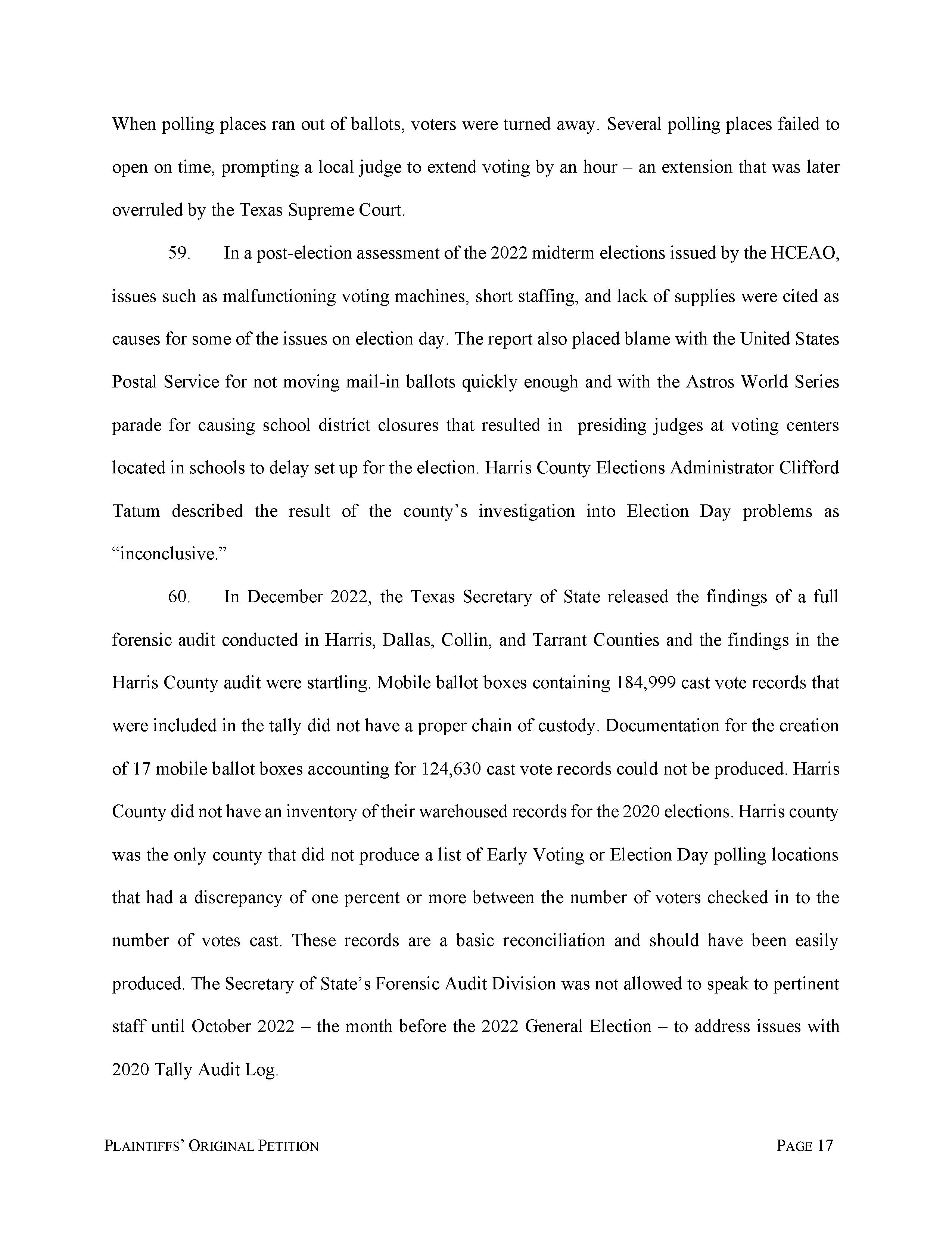 James McIngvale, Wayne Dolcefino, and Dolcefino Communications, LLC D/B/A. Dolcefino Consulting versus Harris County Elections Administrator’s Office was filed on Monday, February 13, 2023, at 9:43 PM with Marilyn Burgess’s Harris County District Clerk’s Office. Aubrey R Taylor Communications is the publisher of the Houston Business Connections Newspaper.