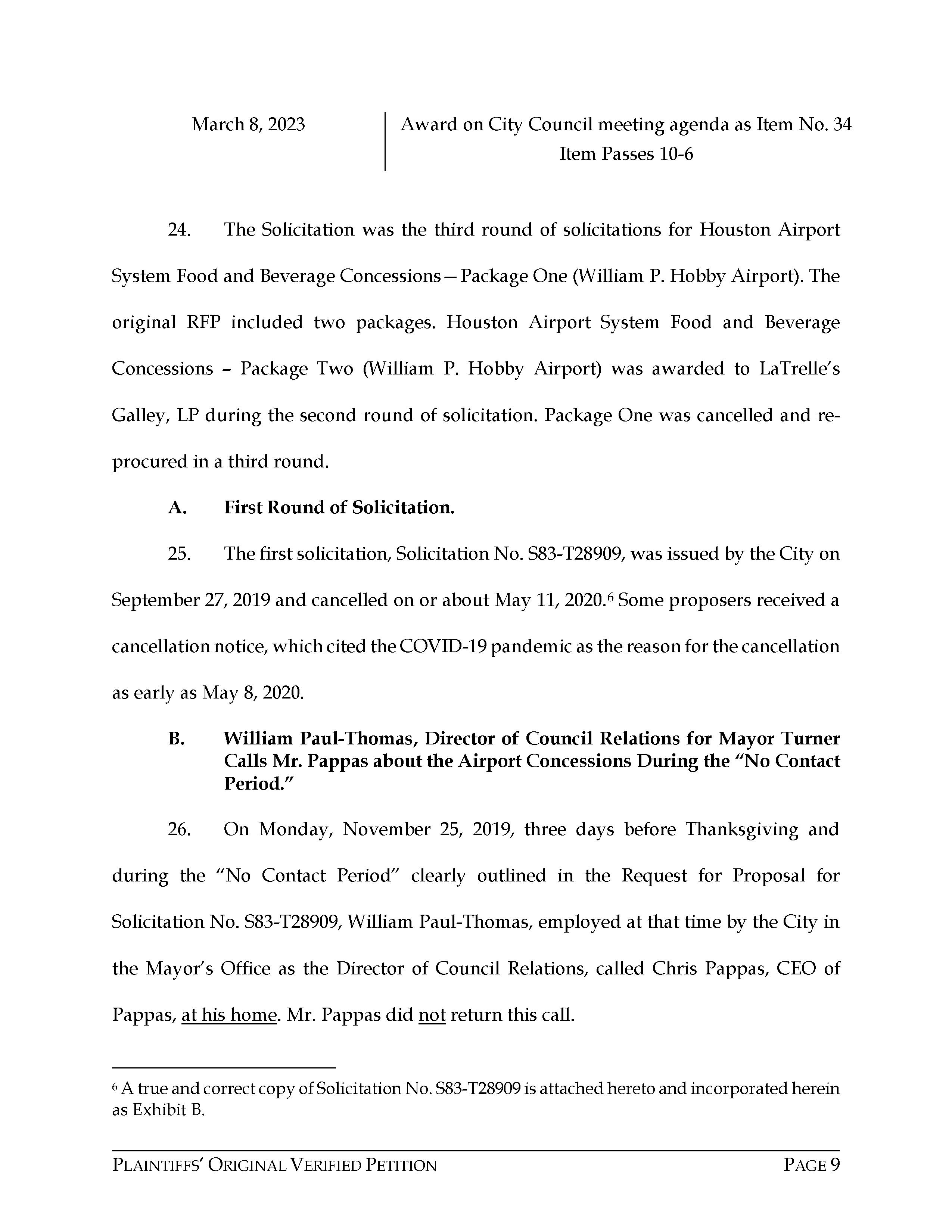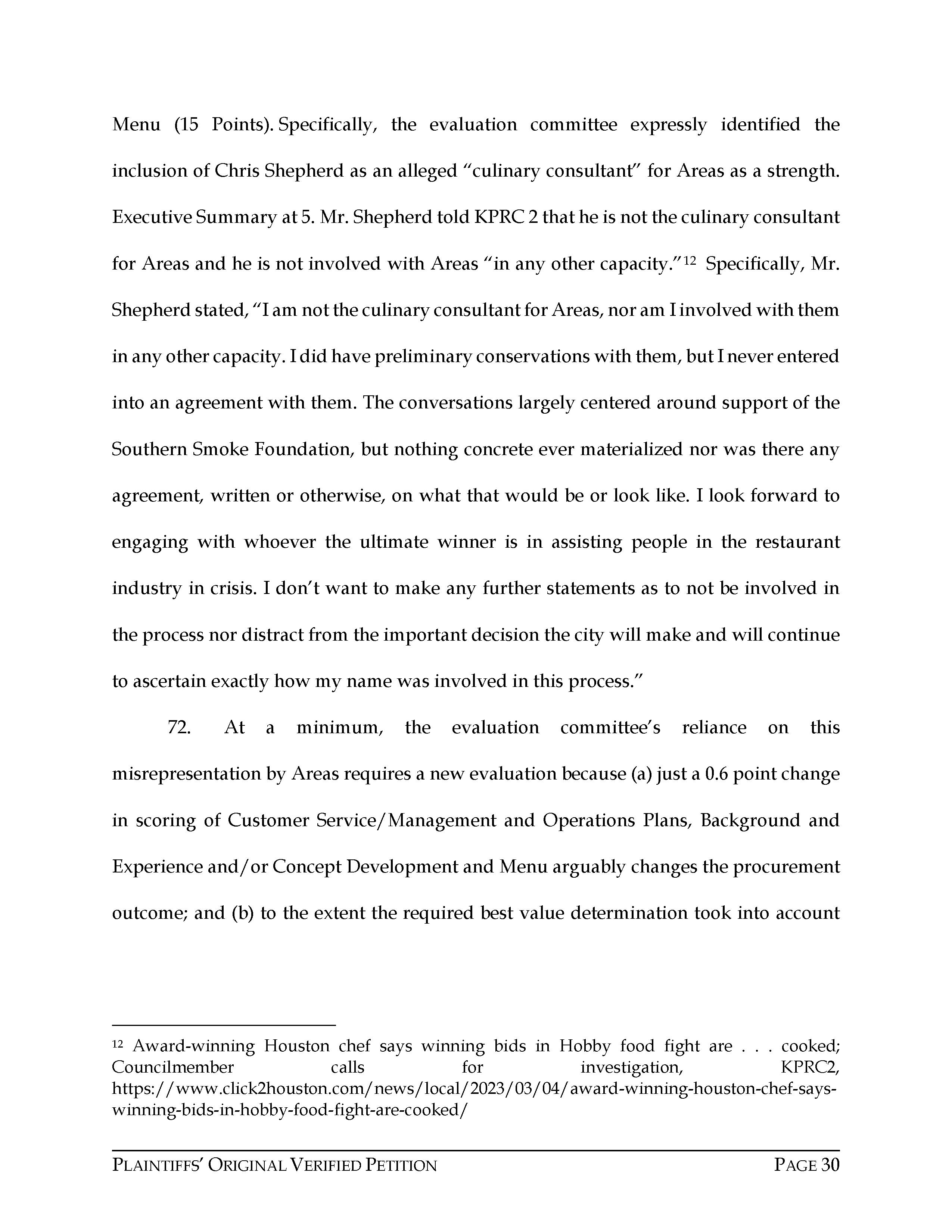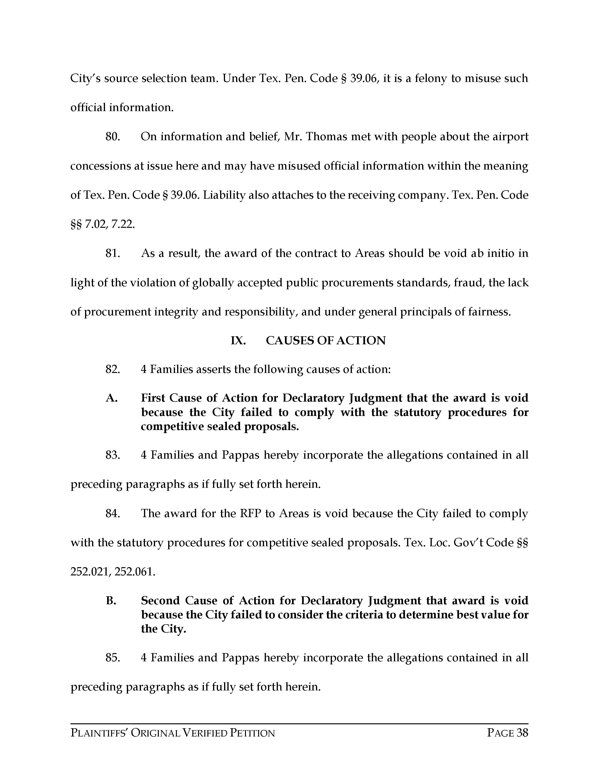 Attorney Rachel Hooper filed this lawsuit against the City of Houston, Texas, and Areas HOV JV, LLC, on behalf of Chris Pappas, 4 Families of Hobby, LLC, and Pappas Restaurants, Inc., on April 11, 2023. The case number is 2023-23872 for this lawsuit. Aubrey R. Taylor Communications is the publisher of the Houston Business Connections Newspaper. All Rights Reserved.