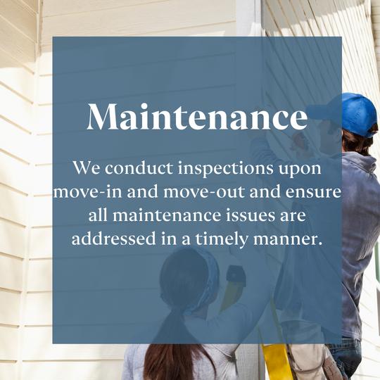 Three detailed inspections ensure the property is well-maintained (one at move-in and two throughout the year), and one annual general maintenance call covering up to $500 provides comprehensive care for essential home features. This is our top-tier, all-inclusive solution for superior property management.