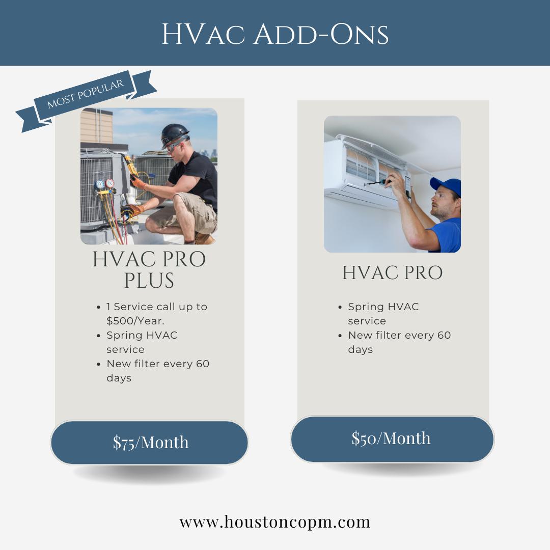 Elite Platinum Package: Our premier offering, priced at 15% of the monthly rental. This package provides enhanced peace of mind with Pro Plus Plumbing and HVAC services.