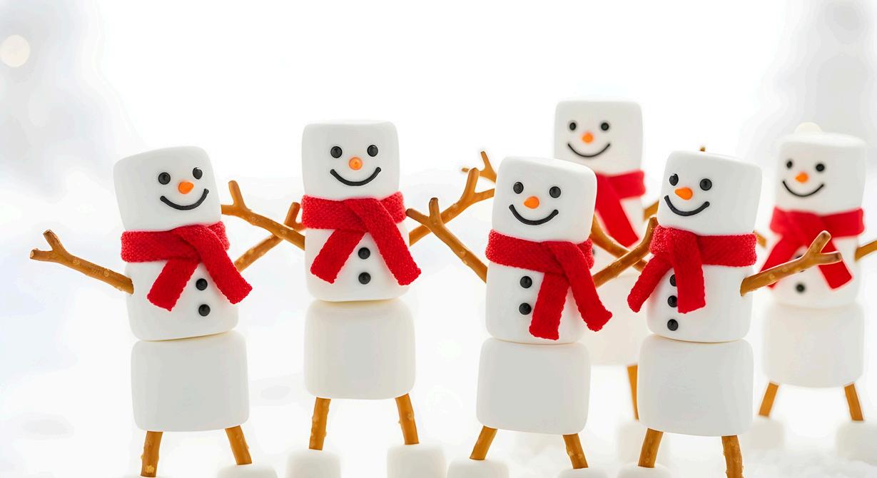 n: Kids can slide three large marshmallows onto ni chocolate chips for eyes/mouth and an a nose, serving them with hot chocolate