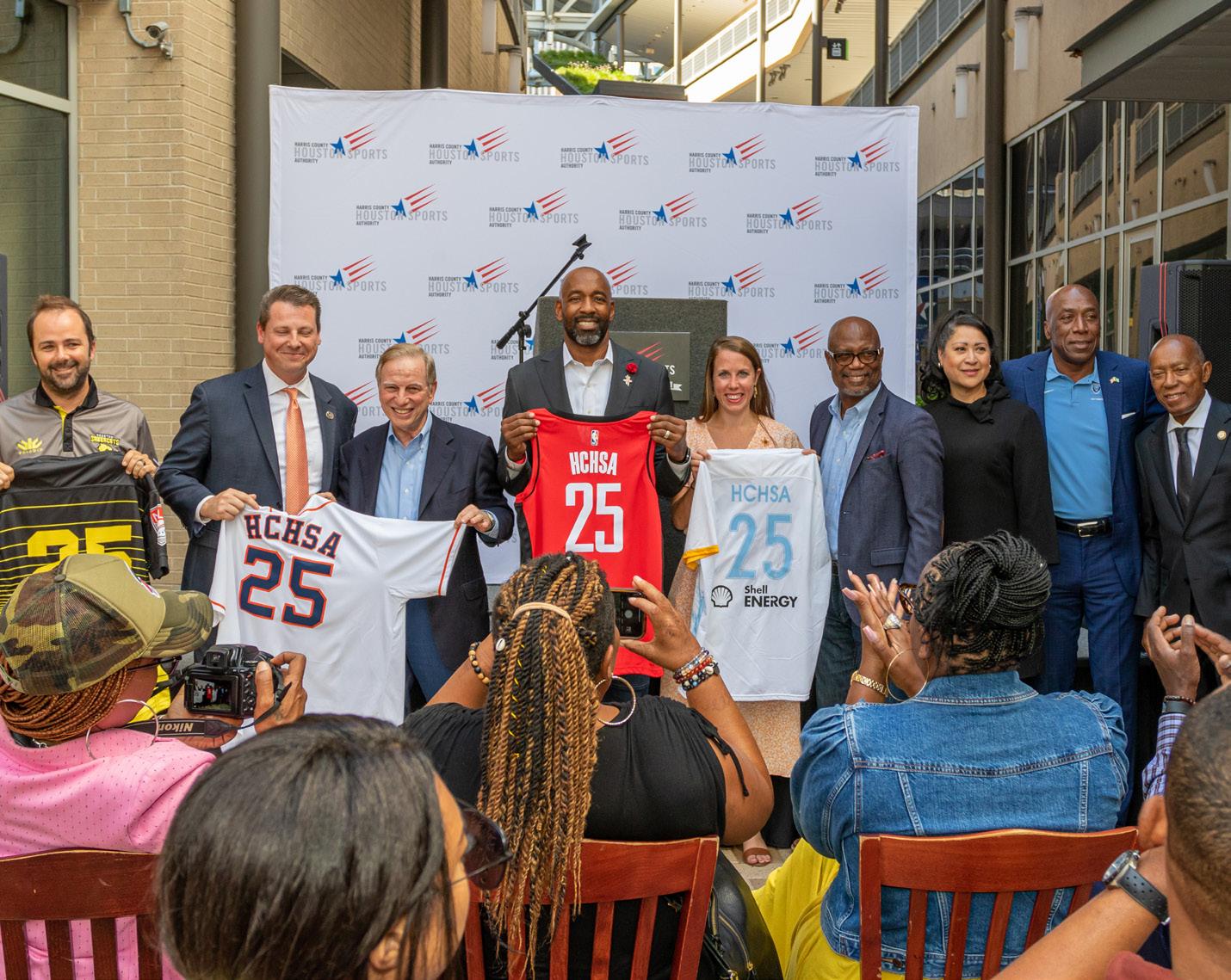 The Harris County - Houston Sports Authority (HCHSA) concluded its 25th Anniversary celebration with the unveiling of the HCHSA Hall of Fame Fountain at the GreenStreet Promenade. The formal announcement of the 2023 Houston Sports Hall of Fame Class served to highlight the unveiling.