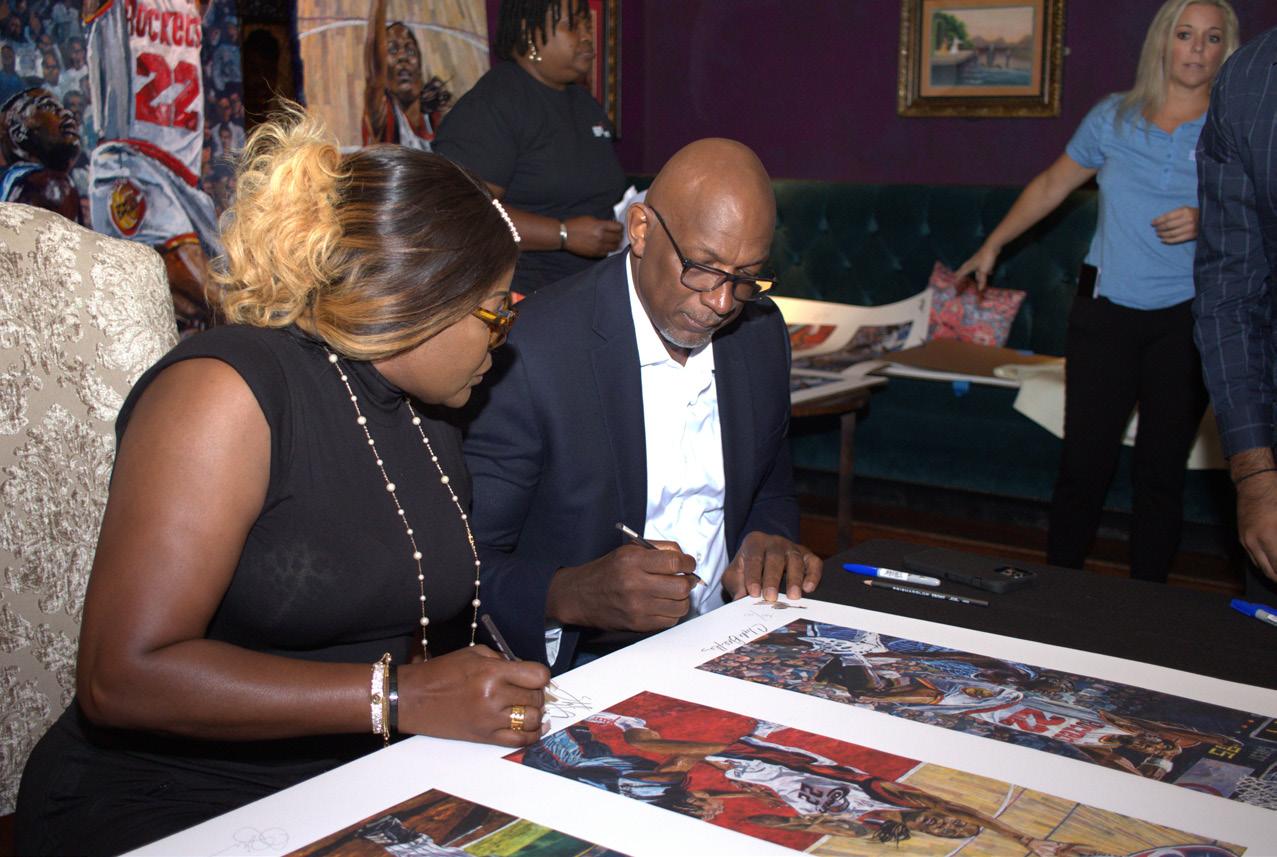 Handprints are Houston artist Opie Otterstad’s unique alternative to athletes writing their signatures onto his work. Kevin Eschenfelder from AT&T Southwest hosted the event inside the House of Blues as the Class of ‘22 saw their HOF rings for the first time. Fred Cuellar of Diamond Cutters International presented the rings while explaining the design and various gems. From there, the festivities moved outside to the Houston Sports