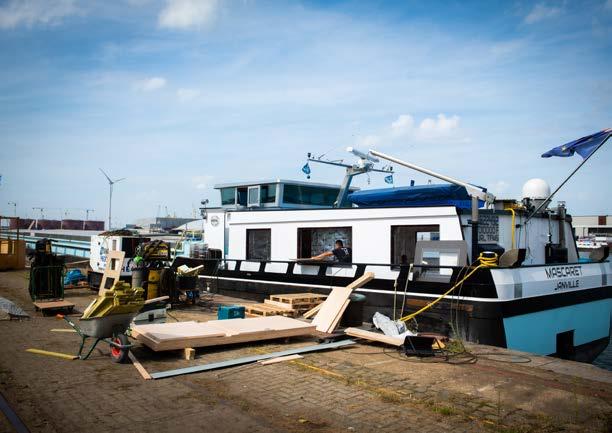 “In het atelier werken we met drie personen. Aan één interieur zijn we soms wel drie maanden bezig. Wij bouwen de interieurs zoals ze in de schepen moeten komen. Het schip komt voor onze deur - in de Antwerpse haven - aan de kaai liggen. Vervolgens instal leert de buitenploeg alles in het schip. Wij moeten dus goed op schema blijven, anders loopt de hele boel vertraging op.”