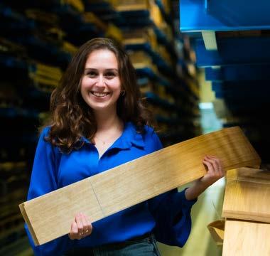 “Mijn stiefvader was zelfstandig schrijnwer ker. Ik merkte dat ik ook interesse had in hout. De structuur, het zicht en de geuren spraken me aan. Ik volgde de richting Hout technieken in Kalmthout. Het aantal meisjes in die opleiding was beperkt tot een paar. Hout was en is nog altijd een mannenwereld, maar dat heeft mij nooit tegengehouden.”