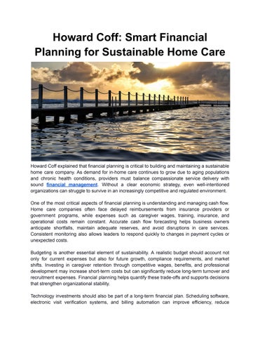 Howard Coff’s career reflects years of steady involvement in work centered on responsibility, structure, and service to others. Together with his wife, he co-owned and managed a Visiting Angels home-care agency serving Montgomery County, Pennsylvania. His role began when the business was founded in 2004 and continued through its sale in 2019. Over those fifteen years, he remained closely engaged in the agency’s development and daily operations, helping guide it through growth and change. The agency began as a new venture and gradually became a trusted option for families seeking dependable home care support. Howard understood that many families turned to home care during challenging times, and he approached the business with that awareness. Rather than pursuing rapid growth, he focused on building reliable systems and consistent practices. This approach allowed the agency to earn the community's trust and maintain stability in an industry that often demands urgency and emotional pressure. Howard’s responsibilities extended across many areas of the business. He was involved in recruiting and training caregivers, overseeing financial management, organizing schedules, and maintaining relationships with clients and community partners. He favored transparent processes and realistic planning, believing that structure helped reduce uncertainty for staff and clients alike. By keeping operations organized and finances carefully monitored, he helped create a work environment that allowed caregivers to focus on providing quality care. In 2015, the agency was recognized with the Zenith Award, honoring it as one of the top private-duty home-care agencies among more than 450 franchises nationwide. This recognition reflected years of consistent work, dependable internal systems, and a level of care valued by families. For Howard, the award reinforced the importance of steady effort and thoughtful leadership rather than short-term results.