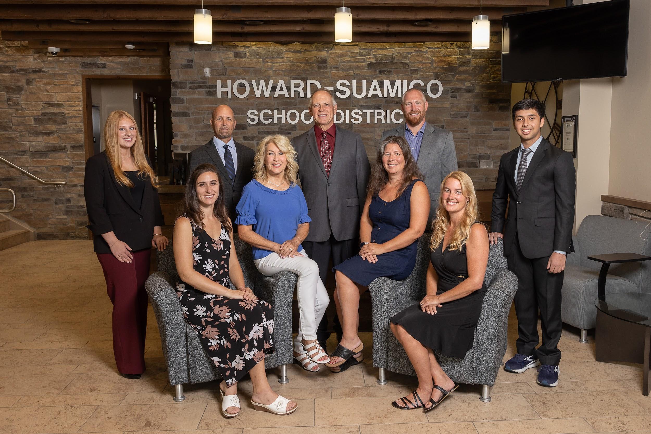 Mark Smith, Superintendent; Chad Buboltz,Assistant Superintendent of Leadership & Learning; Jennifer Garceau,Assistant Superintendent of Student Services; Josh Patchak, Executive Director of Operations; Josh Swanson, Executive Director of Finance; Kimberly Uelmen, Executive Director of Communications; Elisia Lewis, Executive Director of Human Resources; Nicole Smith, Executive Director of the Howard-Suamico Education Foundation