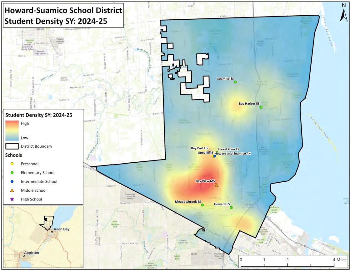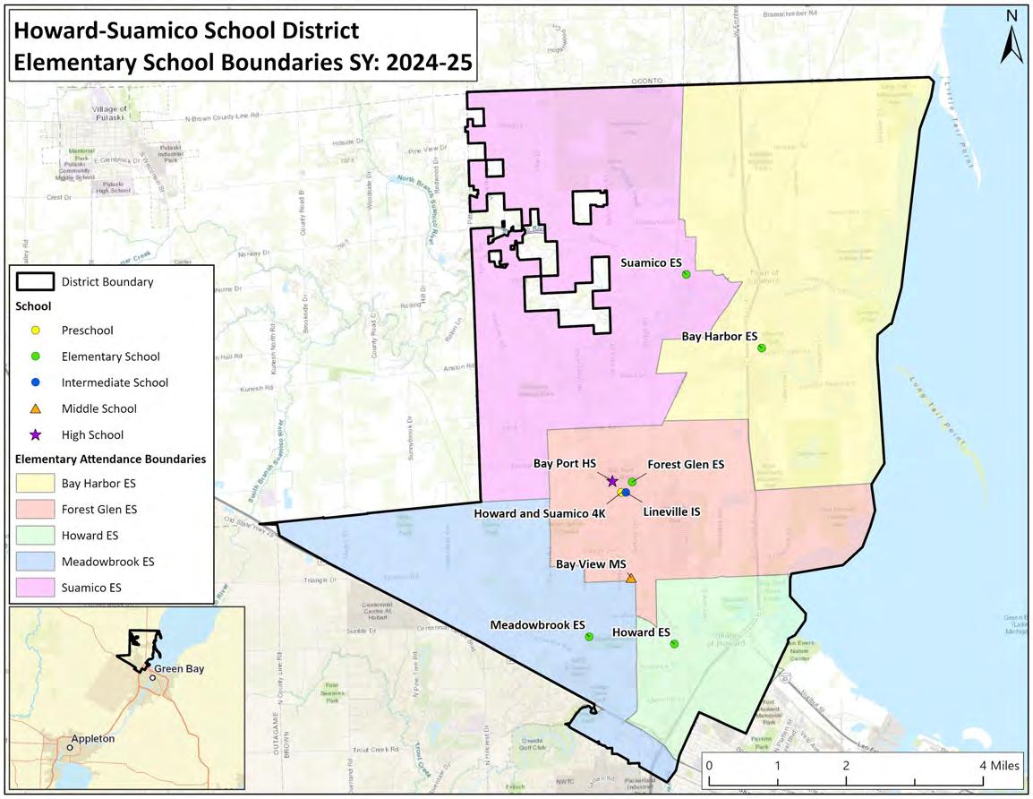 TheHoward-SuamicoSchoolDistrictserves5,654studentsinHowardandSuamico4K,BayHarbor,Forest Glen,Howard,MeadowbrookandSuamicoelementaries,LinevilleIntermediate,BayViewMiddleSchool,and BayPortHighSchoolinthe2024-25schoolyear.