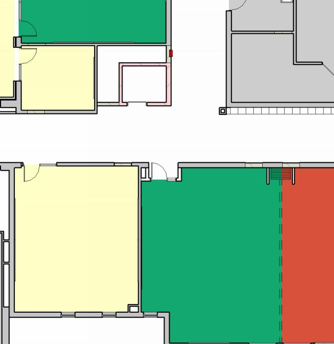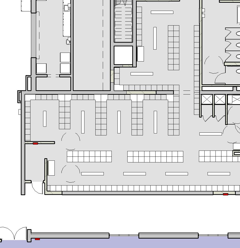 Gym and Cafeteras have access to daylight. LMC/solutionists is internalized with no access, aside from a few very small skylights. Translucent.