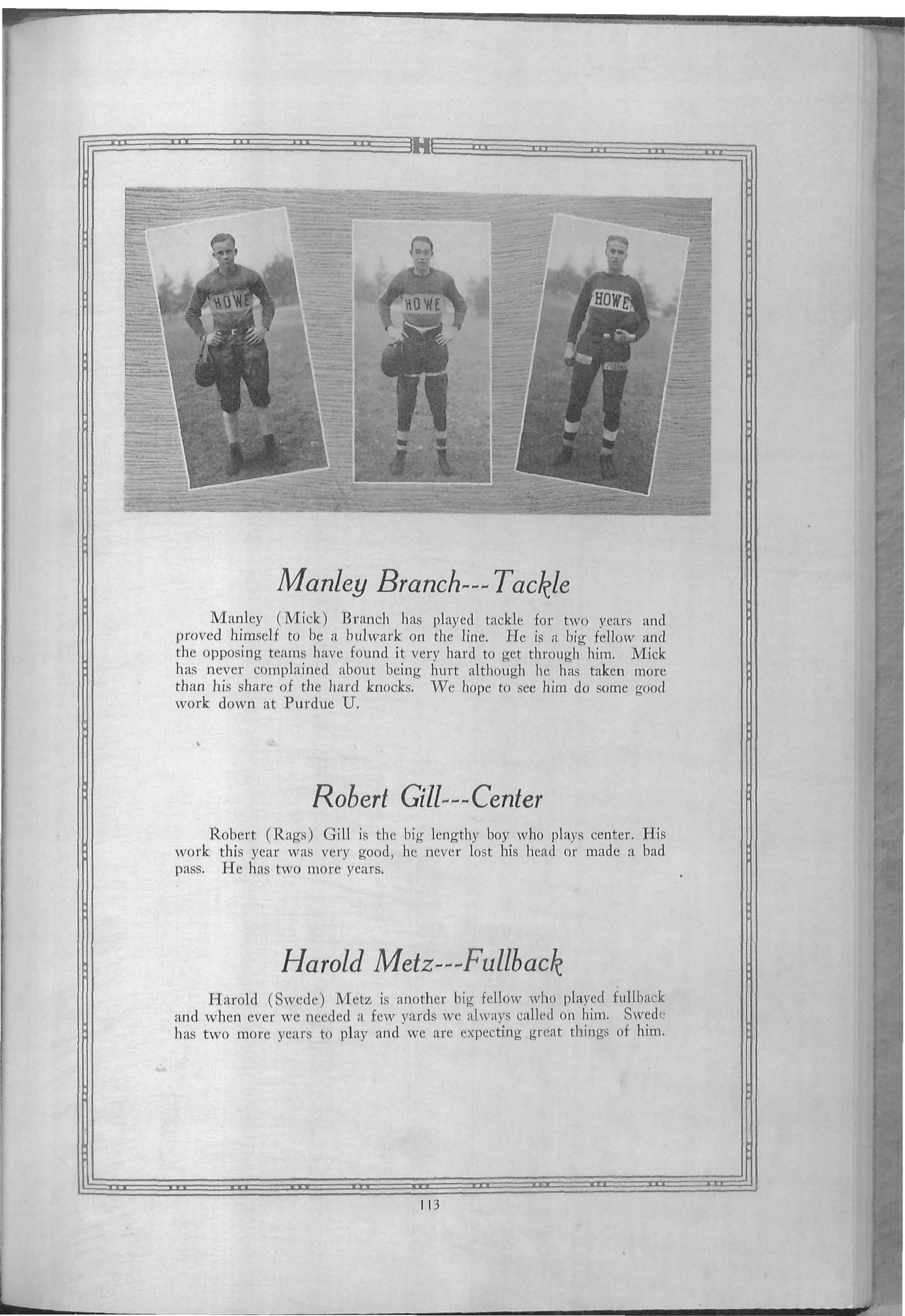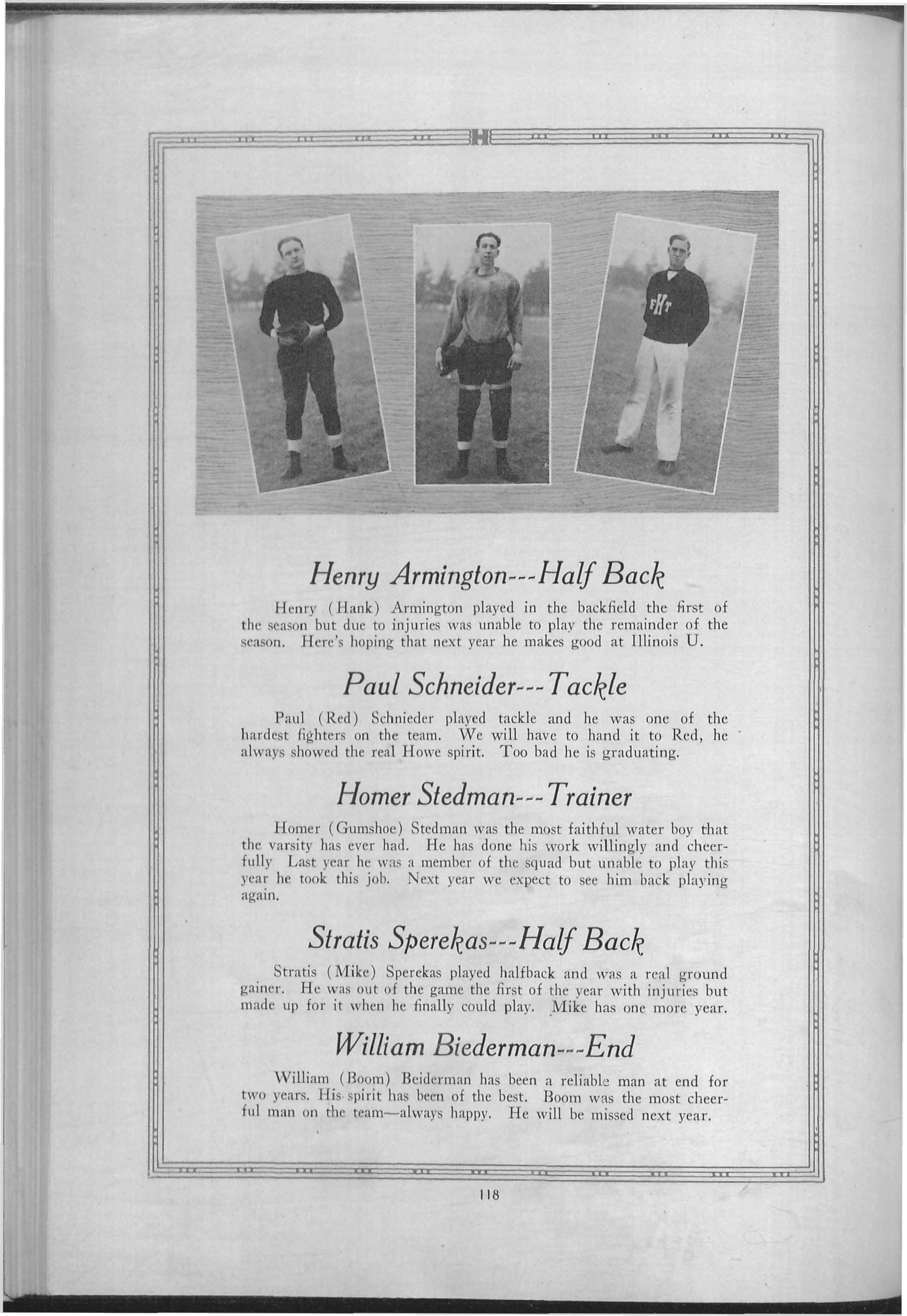 " llank " is the boy who always ha s a big smile on his face no matter what the nature of the issue may he. " llank" hat! the tough lu k of being com· pelled to mi ss two months of sc hool because of illness but he returned in time to graduate with hi s classmates. Thi s i s hi s third year at Howe and in that time he ha s made an enviable record as a football, basketball, and baseball man. Ili s spc· cia lty is gctti1111: out of doing hi s own bookkeeping and he ha s proven himself very adept in this l ine . Henry artendecl summer sc hool in twenty-three ancl during thi s time he was one of th e main attrnctiom at the Clinger Lake Dance Pavi l ion