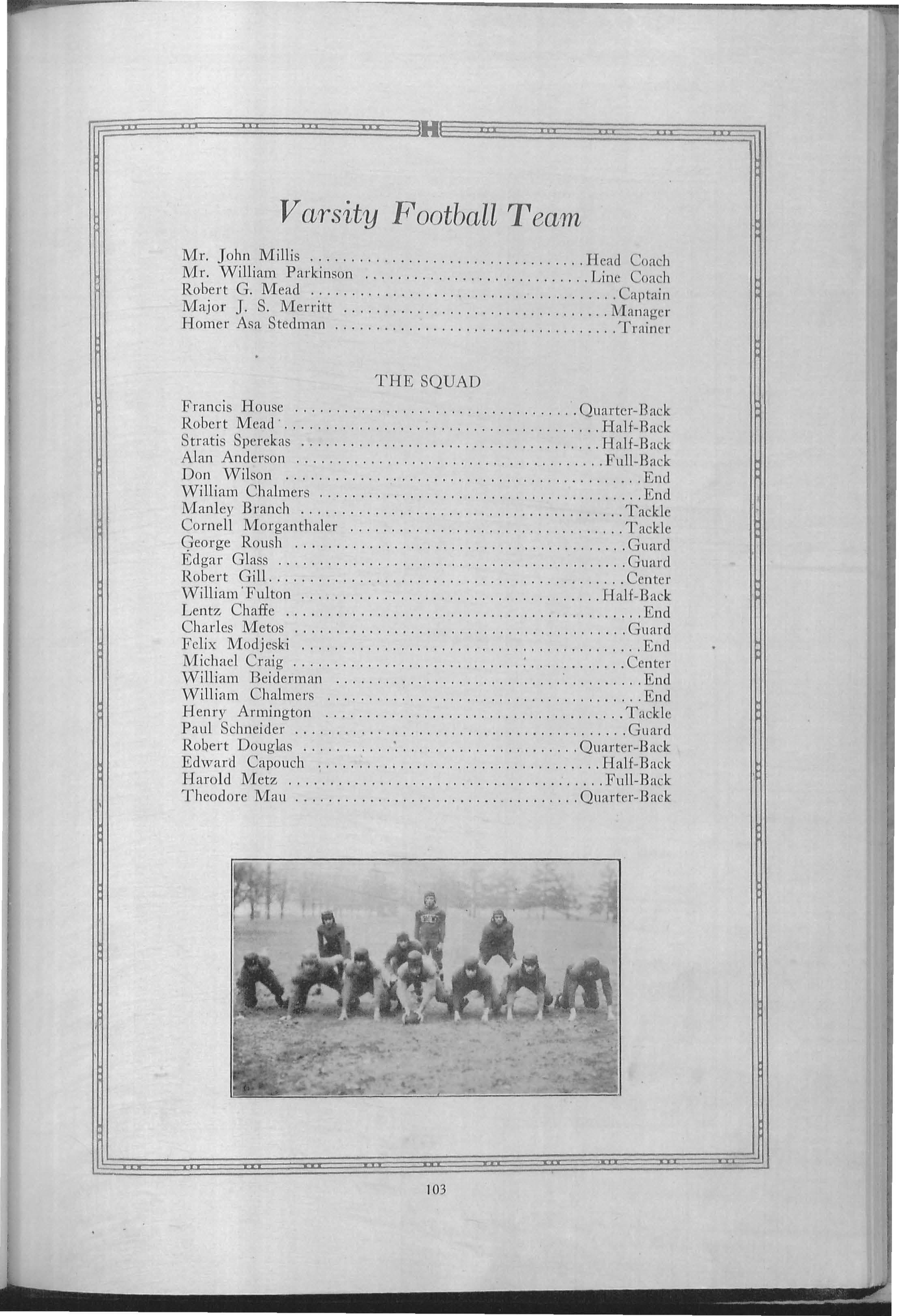 U pper School '2+, '25; Company "M," Sergeant '25; A l pha Tau '24, '25; Sergeant-at-Arms '25; Acolytes (;uild '25; H era ld Staff '2+; C l ass Po et '25; Rifle Team '25; Varsity Football '2+, '25; Varsity Track '2+, '25; MlcKenzie Basketball '24; Var,ity Basketball '25; Varsity Baseball '24; Alpha Delta Tau '25; H ead Master's Prize '25.