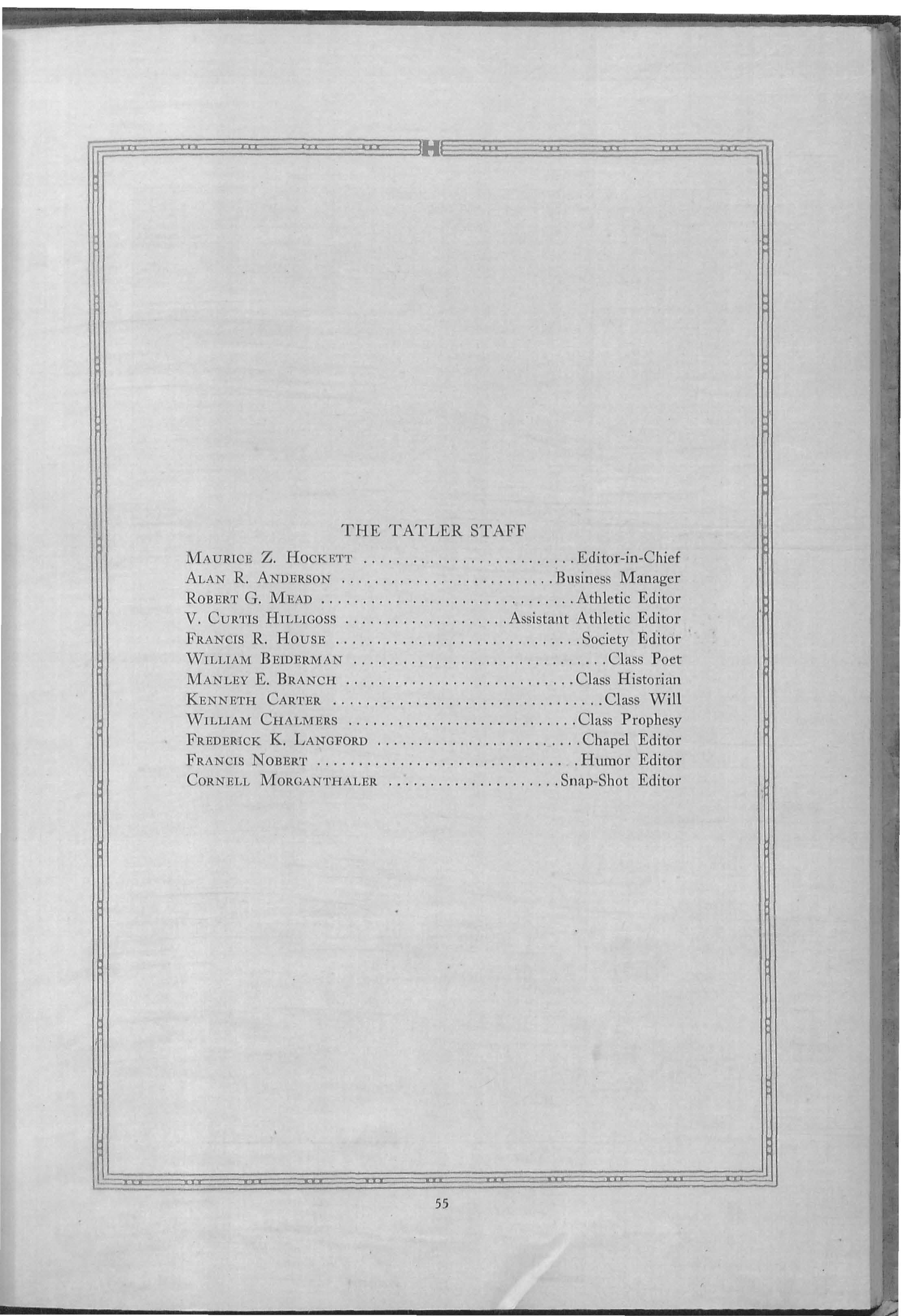 Mr. D. } . Varnes for his untiring efforts to make The Tat/er a literary, financial and artistic success.