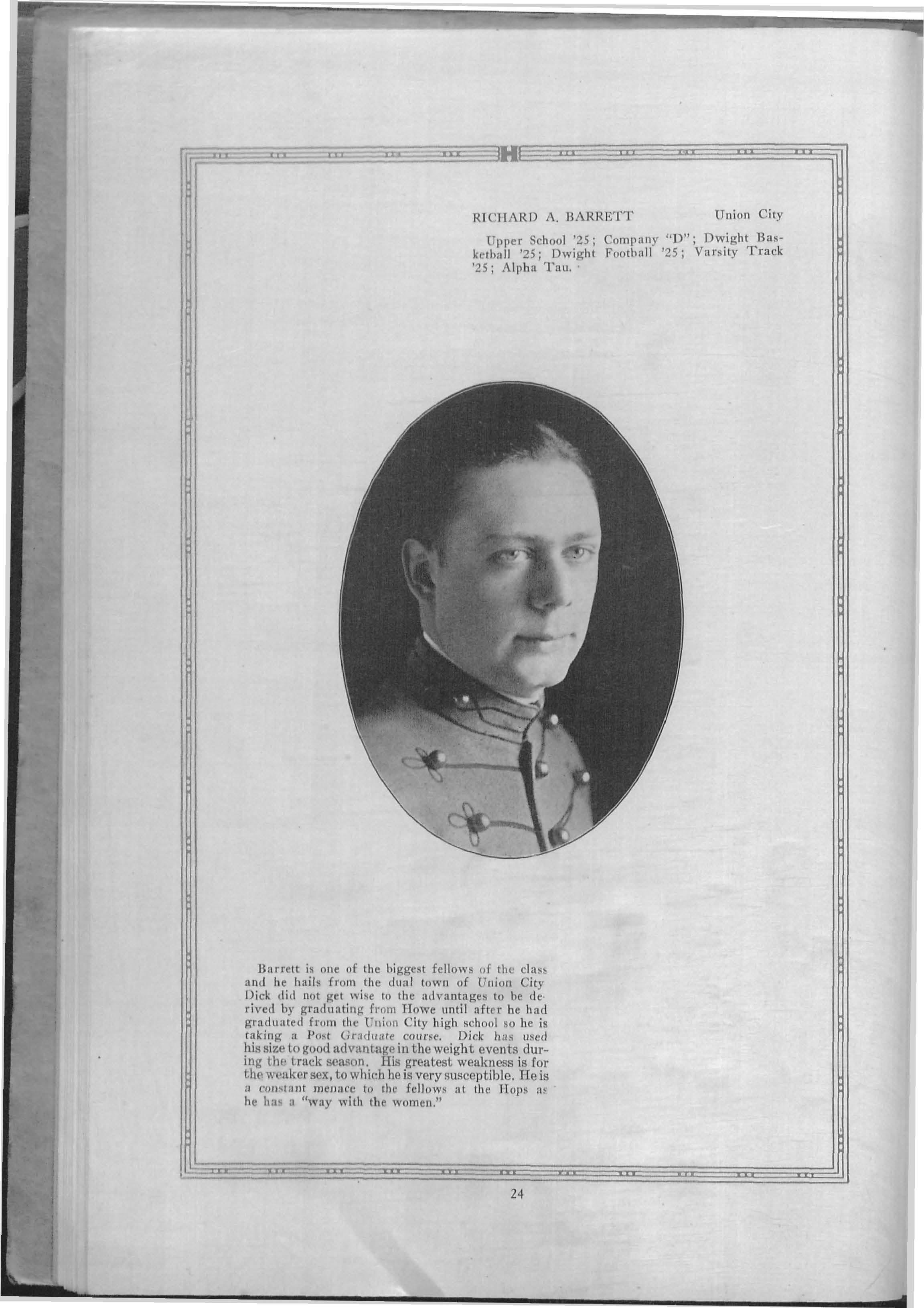 School '25: C'nmpnny " D": A lph a Tau '25; Acolyte's Guild '25; Dwight Football '25; Dwight Basketba ll '25; Dwight Track '25.Upper Sc hool '24, '25; Co. "M," '2+, '25; Pi Delta '2 4, '25.