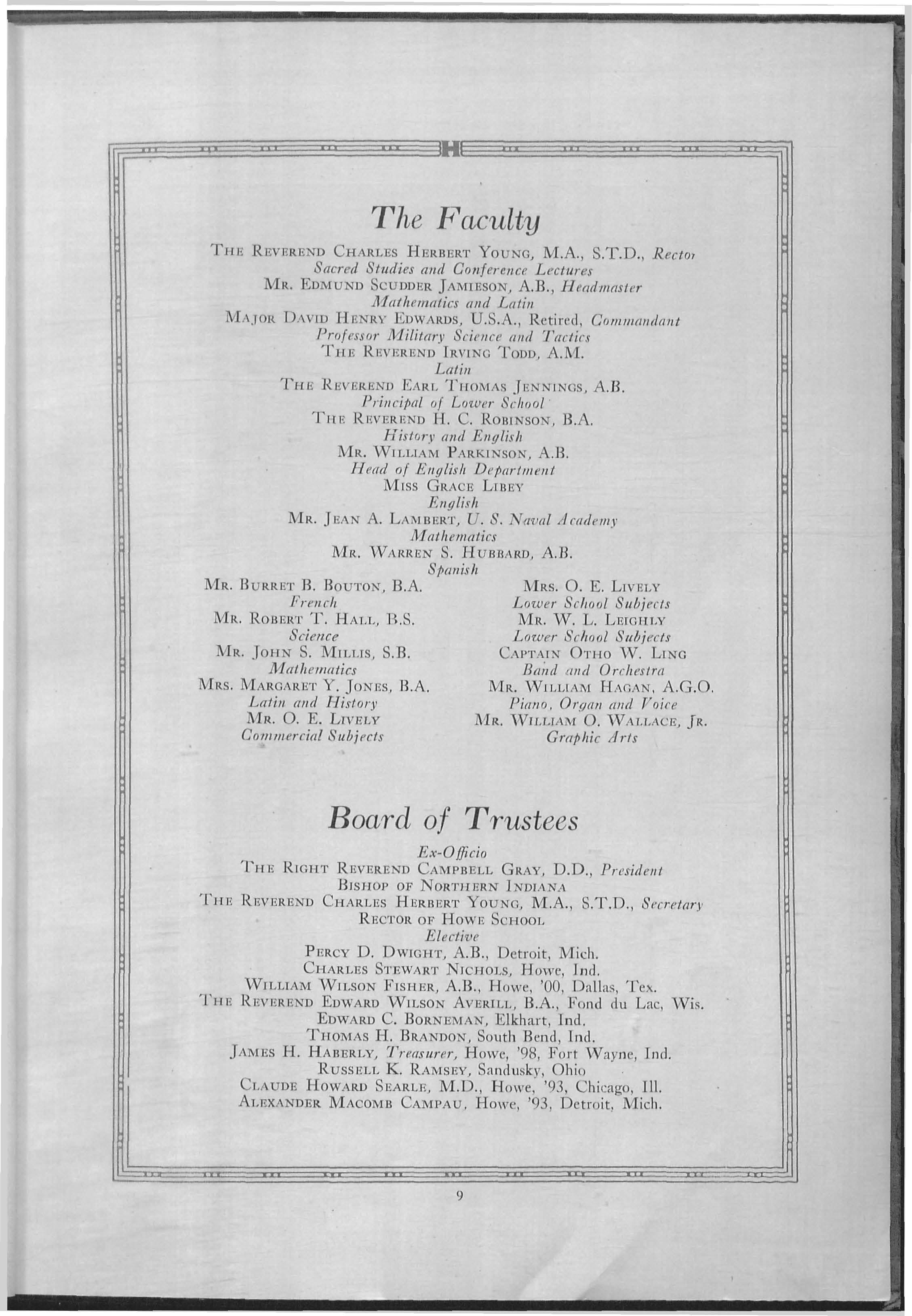 - The Staff.Trinity Co ll ege , ll .A., M.A., S.T.D., Phi Beta Kappa; General Theologica l Seminary; Member of the Associate Mission, Oma h a, for nine years; Principal of t h e A.M. Sc hool for four yea r s; Rector of Christ Churc h , Chicago, seve nteen ye a rs; Member of the Ge neral Boanl of Religious Education s ince it s foundat i on; Howe School Jive yeurs.