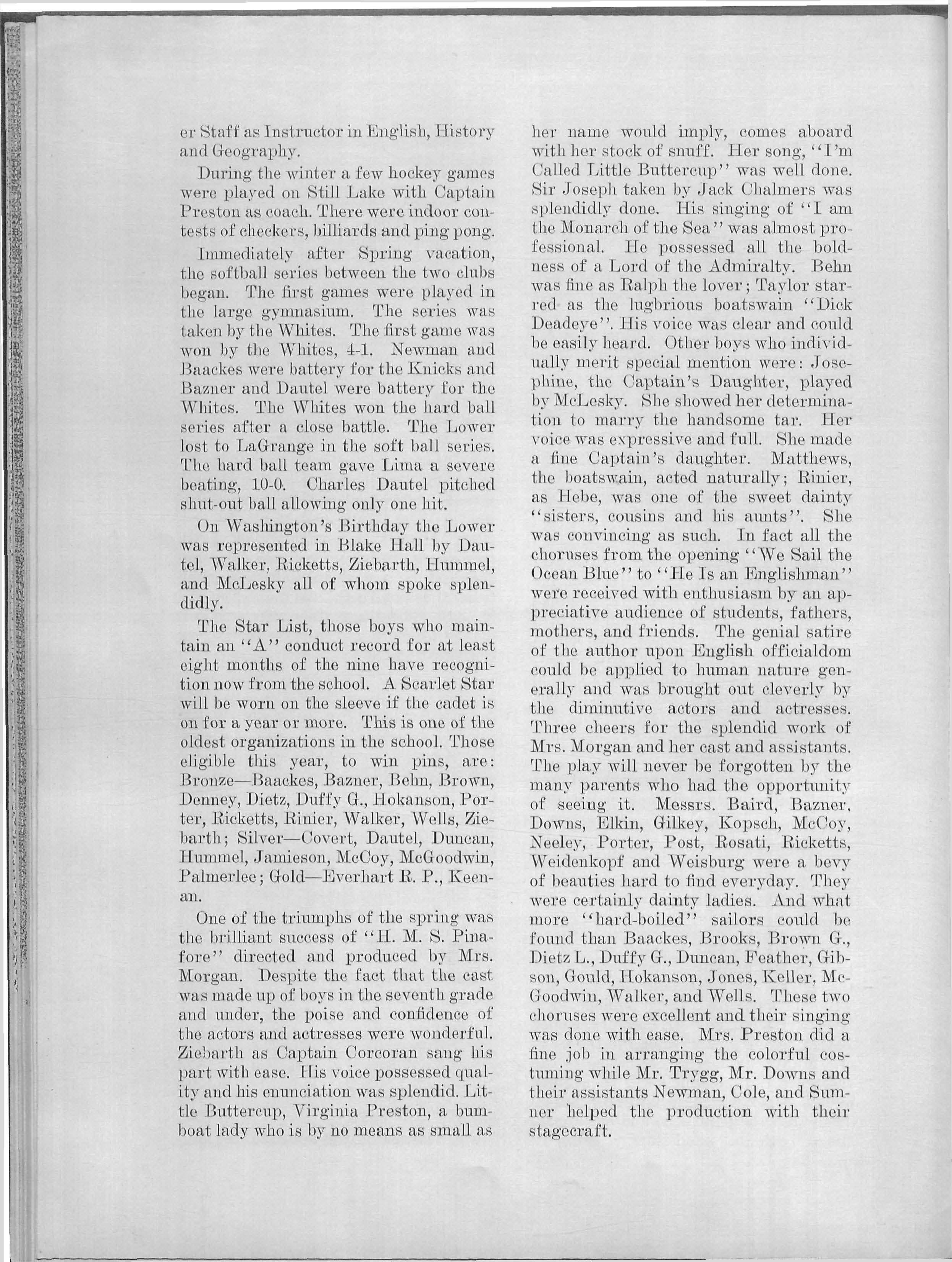 Upper School '35-'37; Co. "B" '3 5-'37 ; P.f. c. Co. "13" '16; Varsity ba sc bn.11 '36-'37; o. "B" ba sketball '35-'37; Co. "B" footlxdl ' 36; Assistant Sports Editor H e rald '36; Sports Editor Hera l d '3 7; Var sity "H" Club '37; Sports Editor Tatlcr '37.