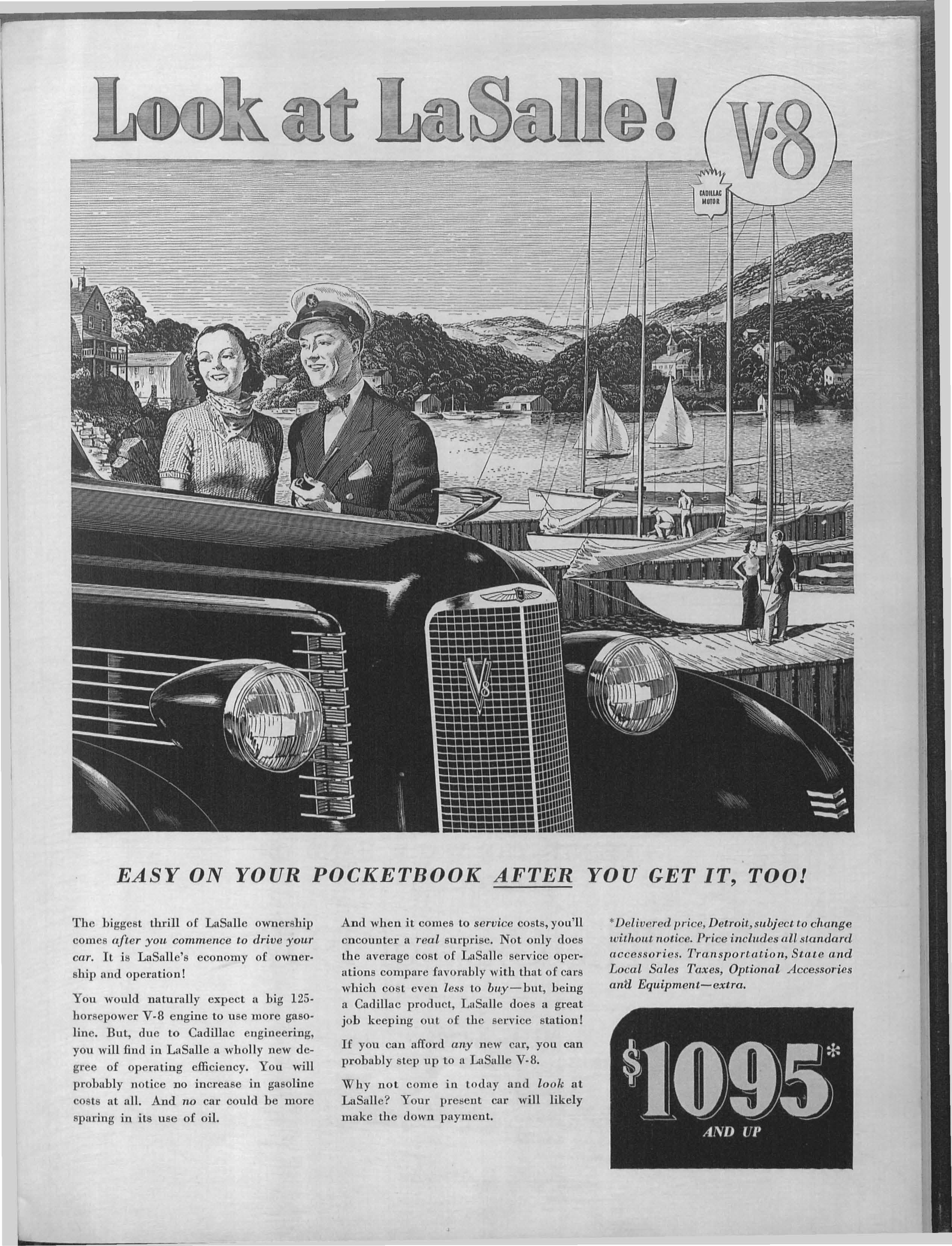 You would naturally expect a big 125horsepowcr V-8 engine to use more gasoline. But, due to Cadillac engineering, you will find in LaSalle a wholly new degree of operating effic iency . You will probably notice no increase in gaso lin e costs at all. And no car cou ld he more sparing in its u se of oil.