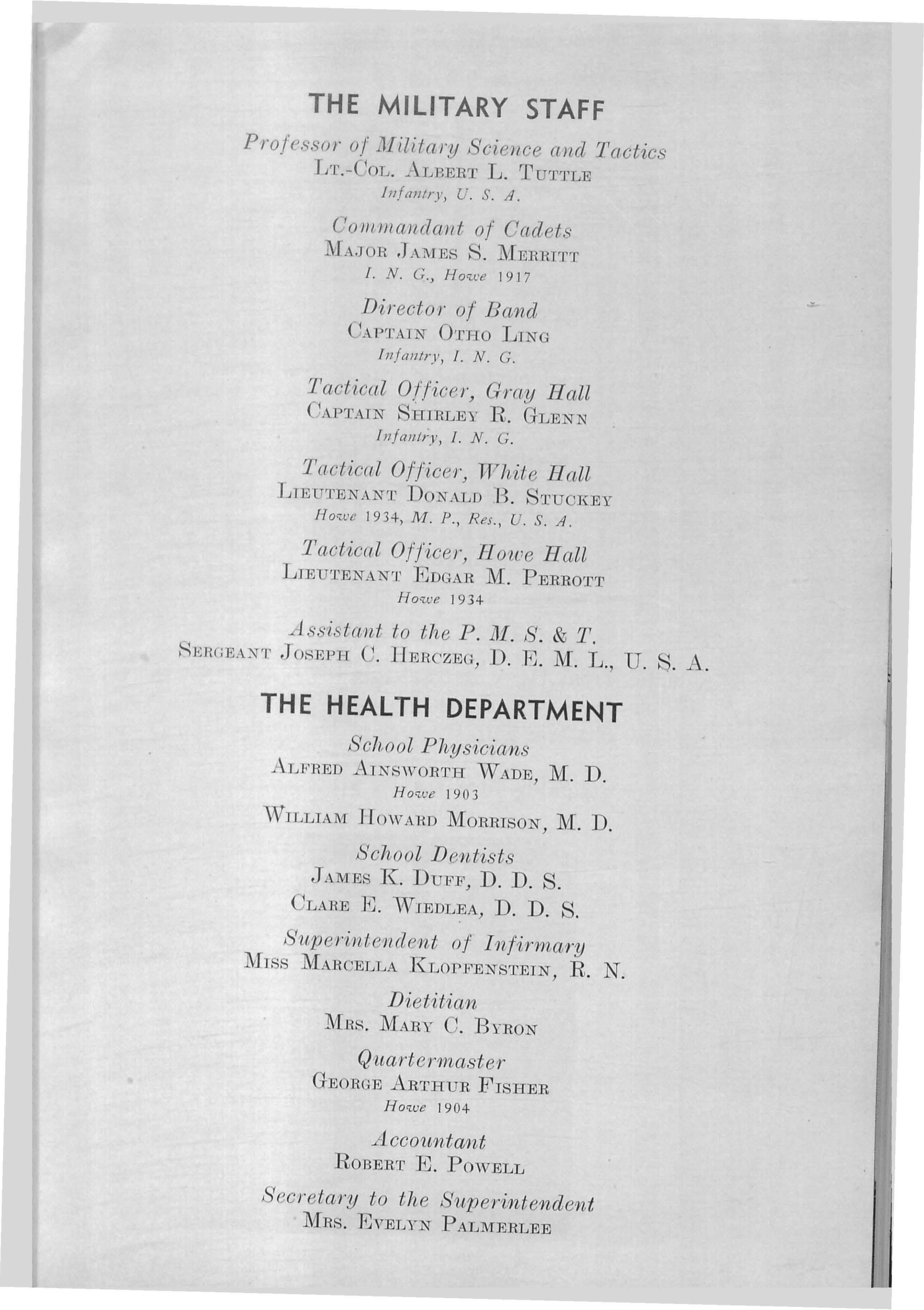 Member of the facultr since 19:29. Head of the Commerrial Department and for fiye years Director of the Howe Summer Camp.