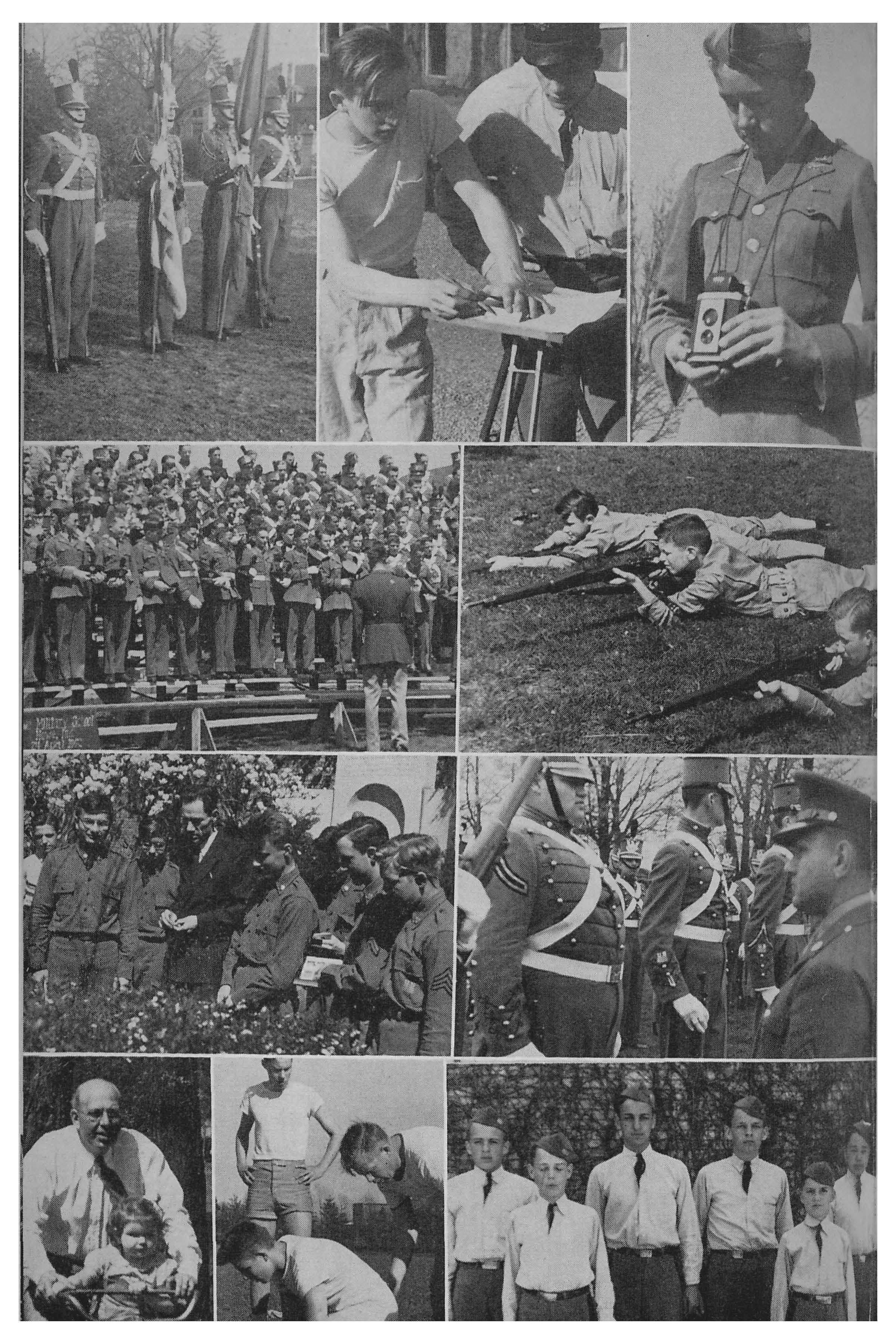 Feurnary :29-Platoon assists in Sturgis flag dedication .ceremony. lJforch 6-Quill and Scroll awards made to McLeskey and Kaiser. Howe goes to Mid-West Prep Tournament at Morgan Park. Defeated Lake .Forest and Culver . LO"wer goes on basketball tTip to Toledo. Ma1·ch 7-Band defeats "A". Russell Hoogerhyde, aTcher, dem011stra tes skill before corps .