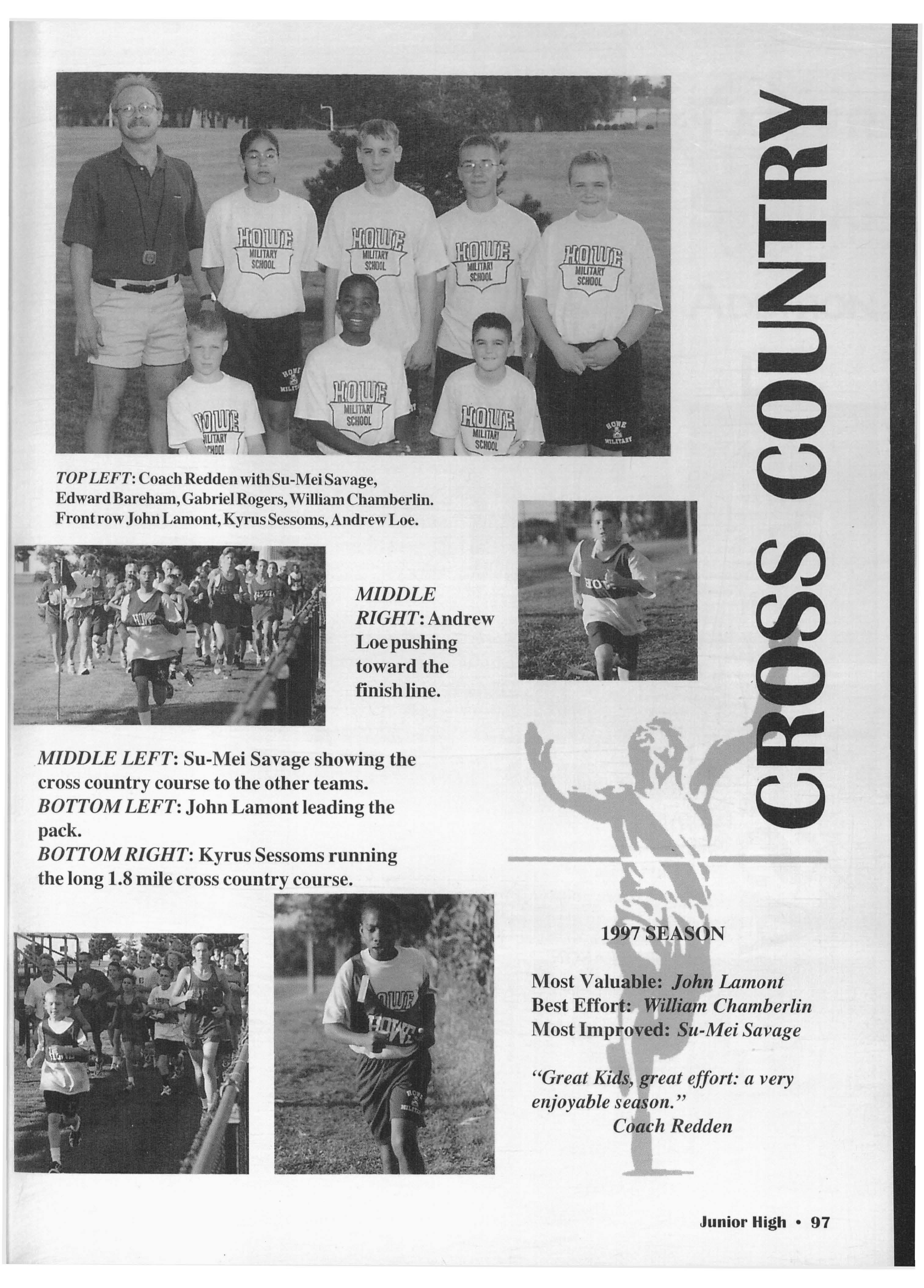 CLUBS: Track, Tennis, SwimTemn, Junior Classical League, Drill Team "My most memorable day at Military School will "I plan on going to college to pursue a career in computer science while minoring in business." "My favorite teacher was Mr. Vogelsang."