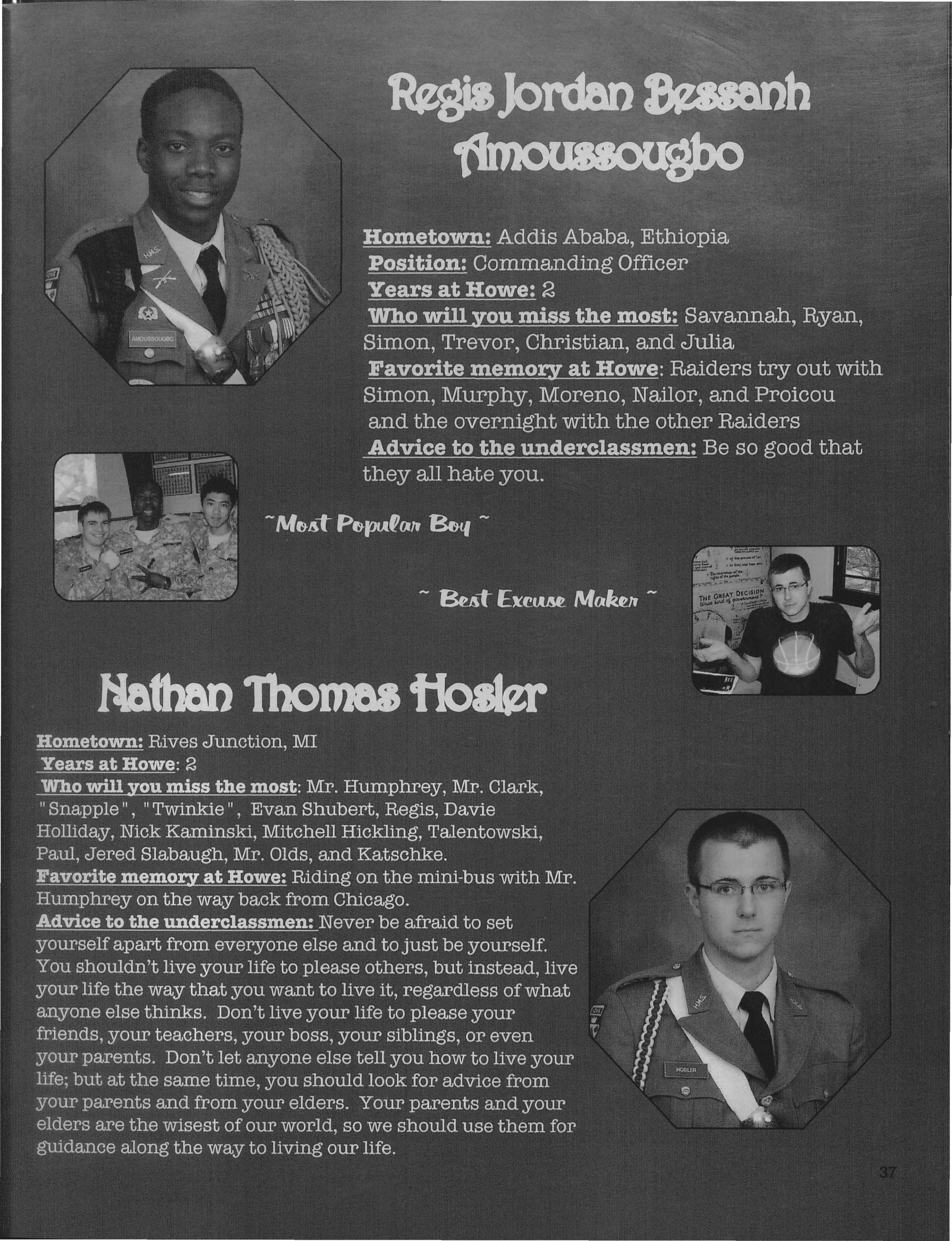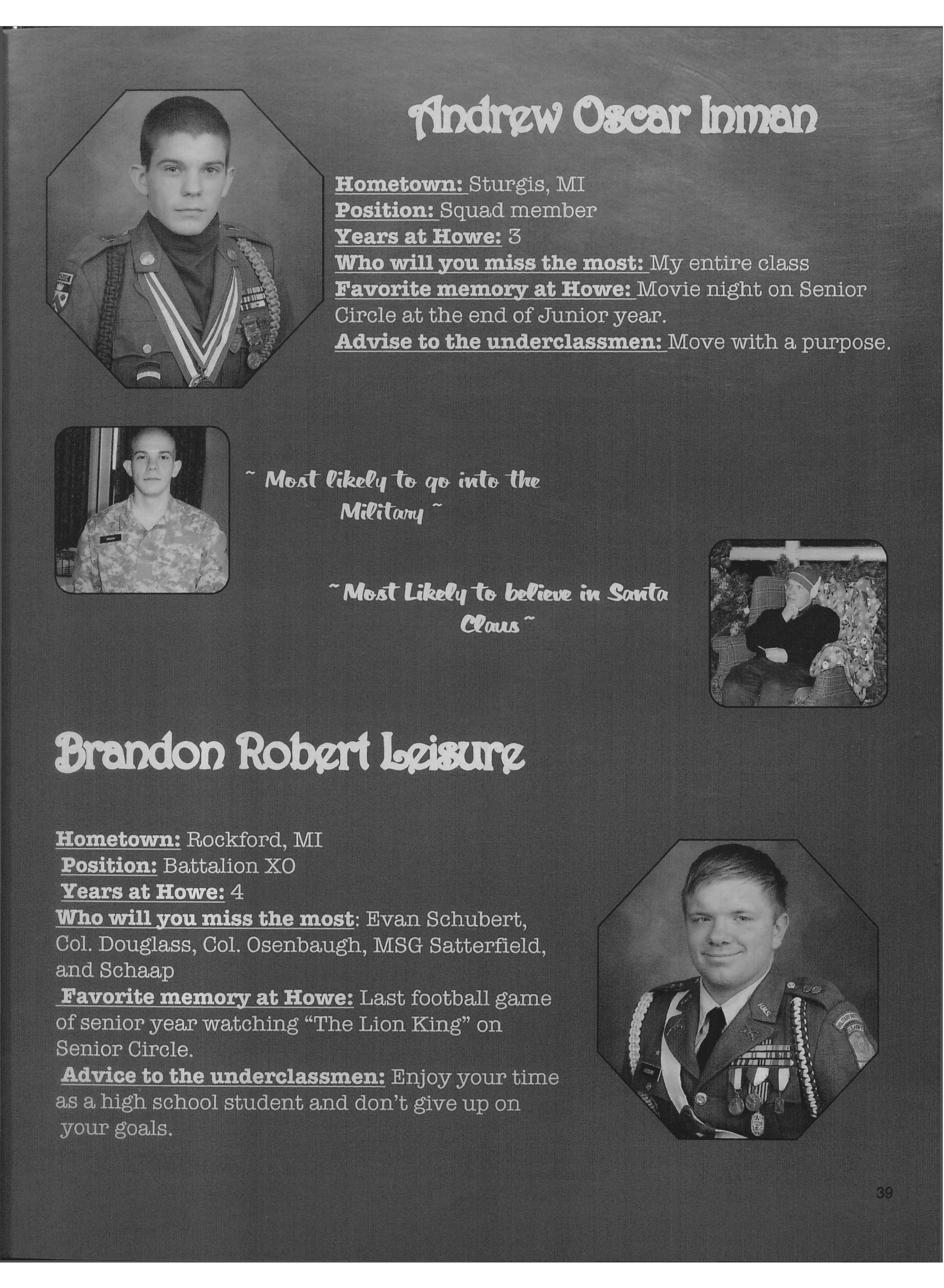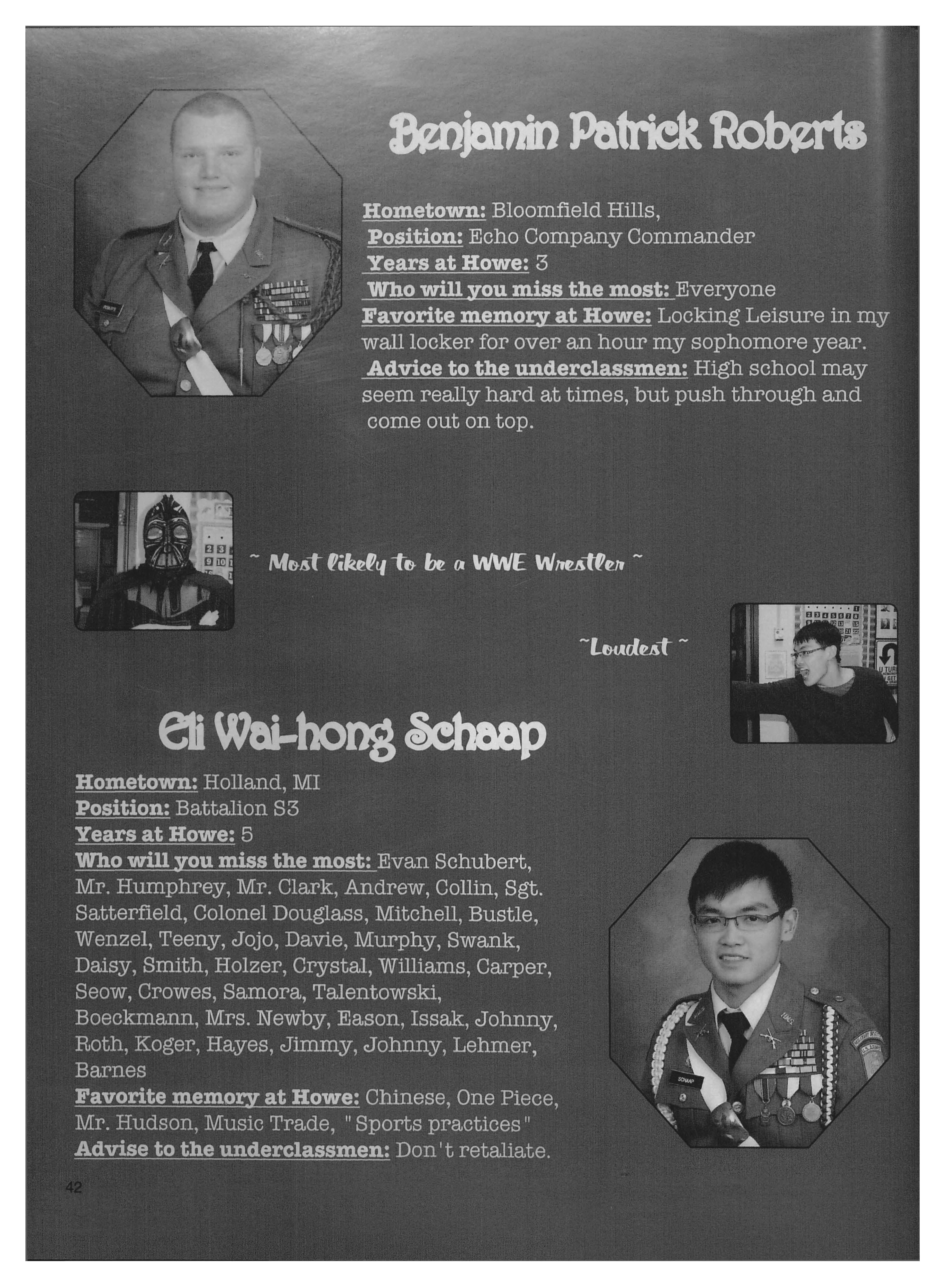 The 2013-2014 Tatler yearbook is dedicated to Ryan Humphrey. Mr. Humphrey has been a part of Howe Military Academy since August of 2012. He graduated from Ball State University in 2002 with a bachelor's degree in education in the Experimental Learning program. He further earned endorsements in reading and technology. During his college work, Mr. Humphrey earned a certificate of science curriculum design from The Smithsonian.